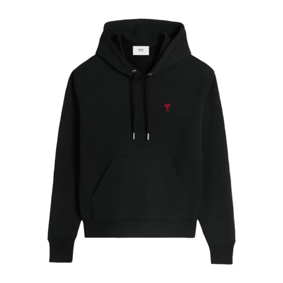 Ami Paris Hoodie kombinerer en boxy pasform med tyk, ubørstet bomuldsfleece for et afslappet hverdagslook. Den har tonal Ami-broderi og brandede metalbeslag for en subtil, signaturfinish. Vigtige egenskaber: Sort | Bomuld | Tyk ubørstet fleece | Hætte | Brandede metaløjer og snoreender | Boxy pasform | Raglanærmer | Tonal Ami de Coeur brystbroderi | Tonal “AMI” broderi under halsudskæringen | Stykfarvet med vasket finish | Brandede metaløjer og snoreender i nikkeltone | Dimensioner og pasform: Centerryglængde: 61 cm (størrelse XS) | Centerryglængde: 65 cm (størrelse M) | Boxy pasform | Sammensætning og pleje: Bomuld
