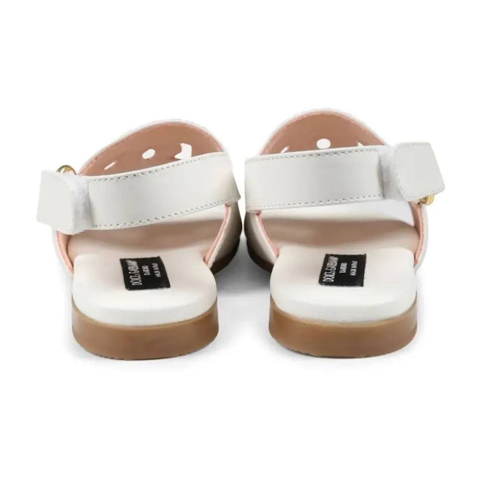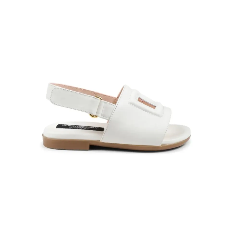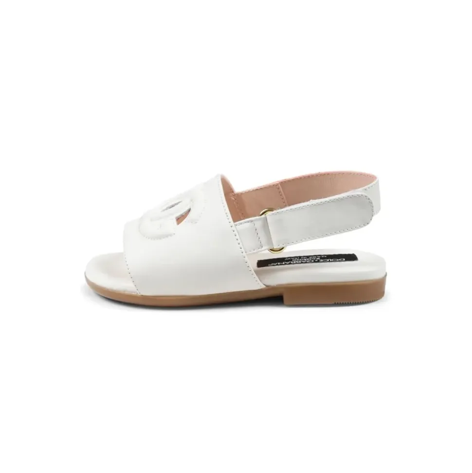 Hvide lædersandaler med udskåret DG-logo