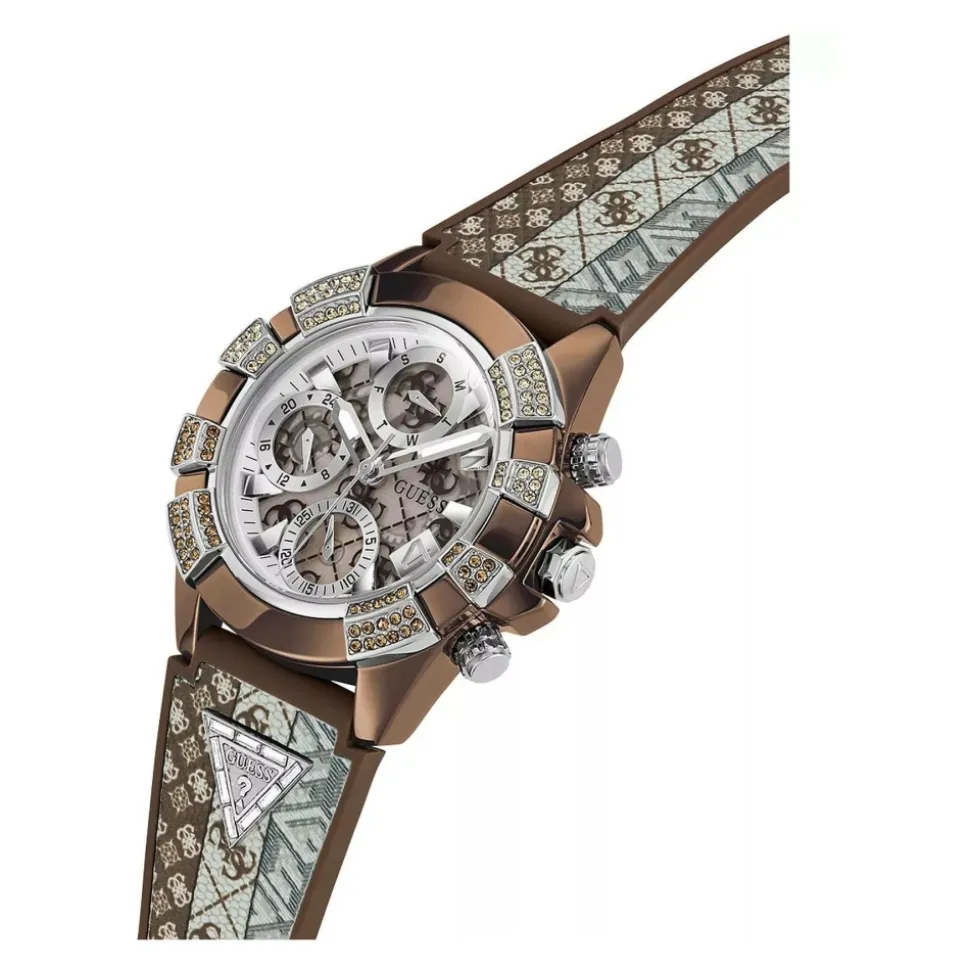 Guess ICONIC 40th Anniversary Special Edition kombinerer en krystalbesat urkasse i rustfrit stål med en flerfarvet silikonerem, der giver et markant ur. Det er designet til at tilføje en poleret, farverig accent til både hverdags- og festlooks. Vigtige egenskaber: Gul | Guld | Rustfrit stål | Vandafvisende op til 50 m | Mineralglas | Flerfarvet silikonerem for komfortabel brug | Klar, letlæselig urskive | Urkasse i rustfrit stål med krystaludsmykning | Sølvfarvet urskive | 40-års jubilæums special edition-detaljer | Sammensætning og pleje: Rustfrit stål (urkasse) | Silikone (rem) | Mineralglas (glas) | Krystaller (udsmykning) | Tør urkassen og glasset af med en blød klud. Rengør silikoneremmen med mild sæbe og vand; skyl og tør grundigt. Undgå stærke kemikalier, og betjen ikke kronen eller knapperne, når uret er vådt. Få vandtætheden kontrolleret regelmæssigt.