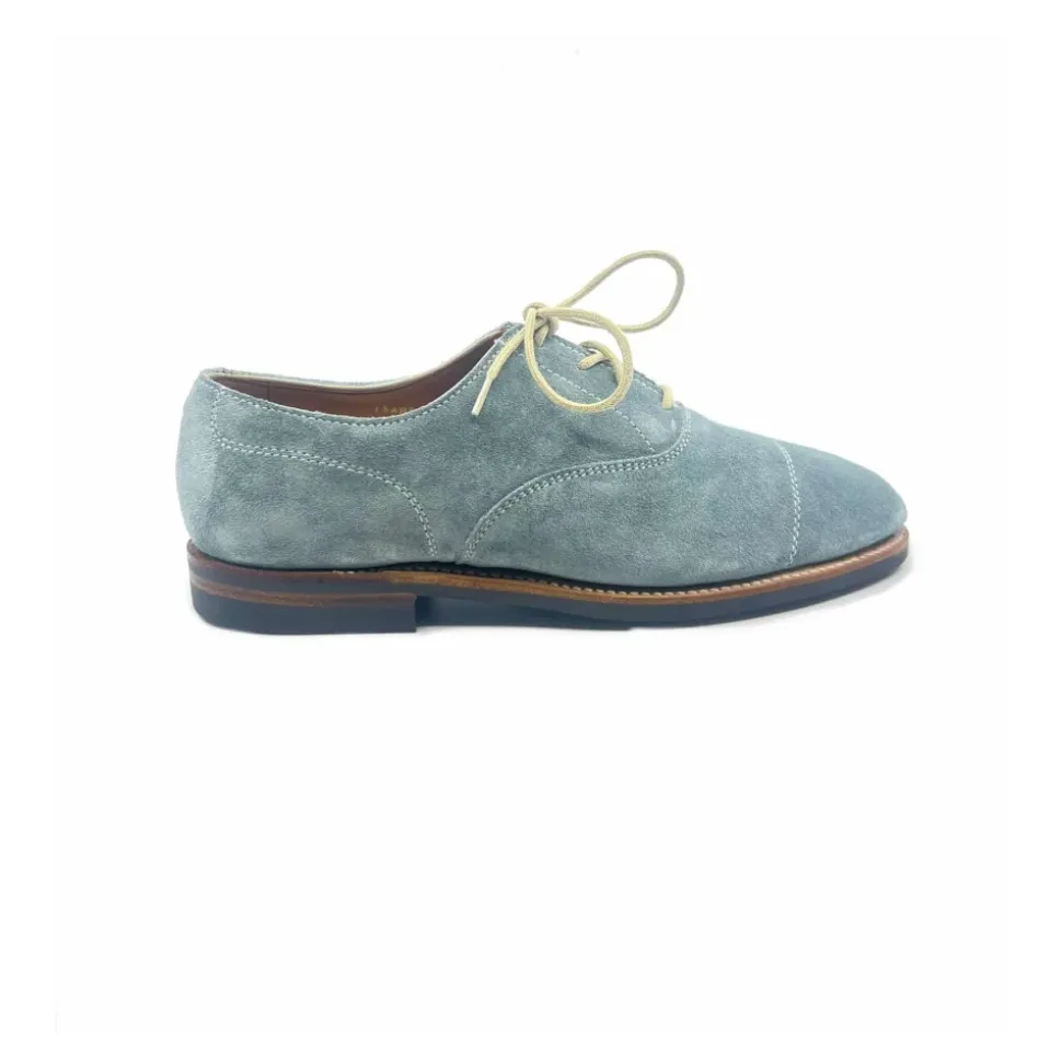 Crockett & Jones Isabelle Oxford kombinerer en overdel i fløjl med Goodyear-welted konstruktion for et raffineret, slidstærkt look. Designet til aftenbrug eller smarte, afslappede looks, kombinerer den klassiske Oxford-linjer med komfort under foden i læder. Vigtigste egenskaber: Blue | Bleu | Fløjl | Goodyear-welted konstruktion | Læder indersål | Lædersål | Apron toe (bout rapporté) | Closed-lacing Oxford | Snørelukning foran | Form 617 læst | Sammensætning & pleje: Overdel i fløjl | Læder indersål og sål | Brug passende skotræer for at bevare formen.