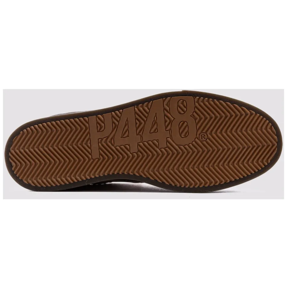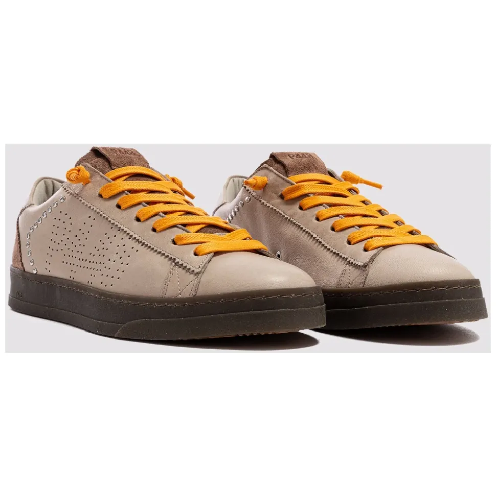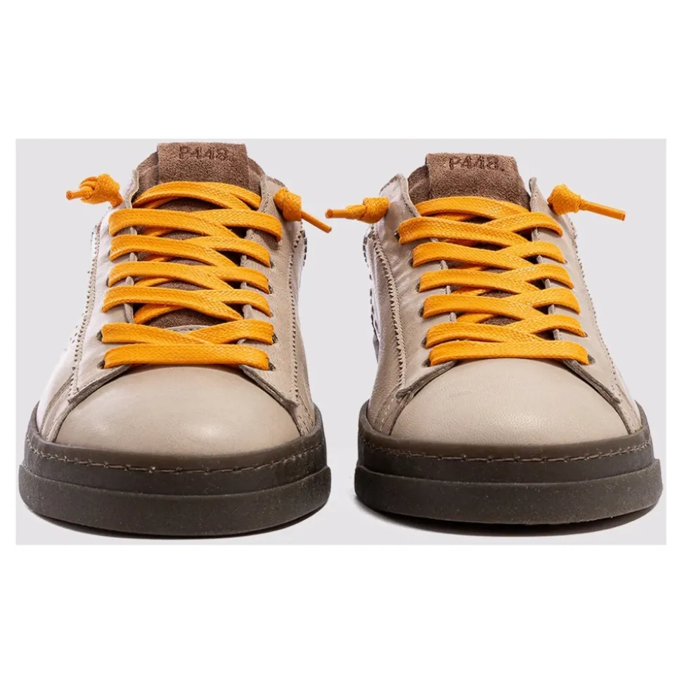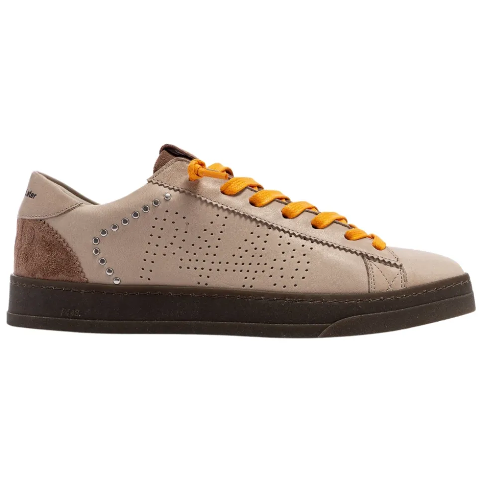 P448 Jack Terra kombinerer beige læder med brunt ruskind og nittedetaljer for en karakteristisk hverdags-sneaker. Den inkluderer orange og cremefarvede voksede bomuldssnørebånd og en P448 brun gummisål for et solidt fodfæste. Vigtige egenskaber: Beige | Brun | Læder | P448 brun gummisål | Lysebrun slidbane | Orange voksede bomuldssnørebånd | Ekstra par cremefarvede voksede bomuldssnørebånd inkluderet | P448 brun gummisål | Brune ruskindspaneler | Nittedetaljer | Perforeret P448 logo | Dimensioner & pasform: Normal i størrelsen | Sammensætning & pleje: Læderoverdel | Ruskindspaneler | Gummisål | Voksede bomuldssnørebånd | Metalnitter | Tør farvede eller distressed såler af med en fugtig klud; undgå kraftig skrubning.