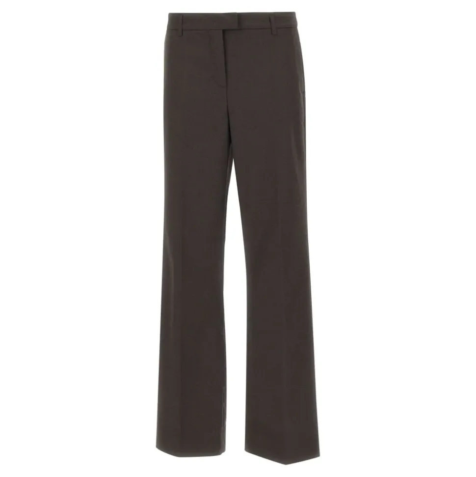 Birgitte Herskind Jack Trousers fortolker klassisk herrekonfektion med moderne lethed. De har en lav talje og skræddersyede pressefolder, der tilføjer struktur til en afslappet, bredbenet silhuet. Vigtigste egenskaber: Brun | Skrå lommer | Skrædderi-inspirerede detaljer | Sartoriale læg/pressefolder foran og bagpå | Falske paspolerede lommer med knapper bagpå | Mål og pasform: Lav talje | Bred pasform | Struktureret silhuet med pressefolder foran og bagpå