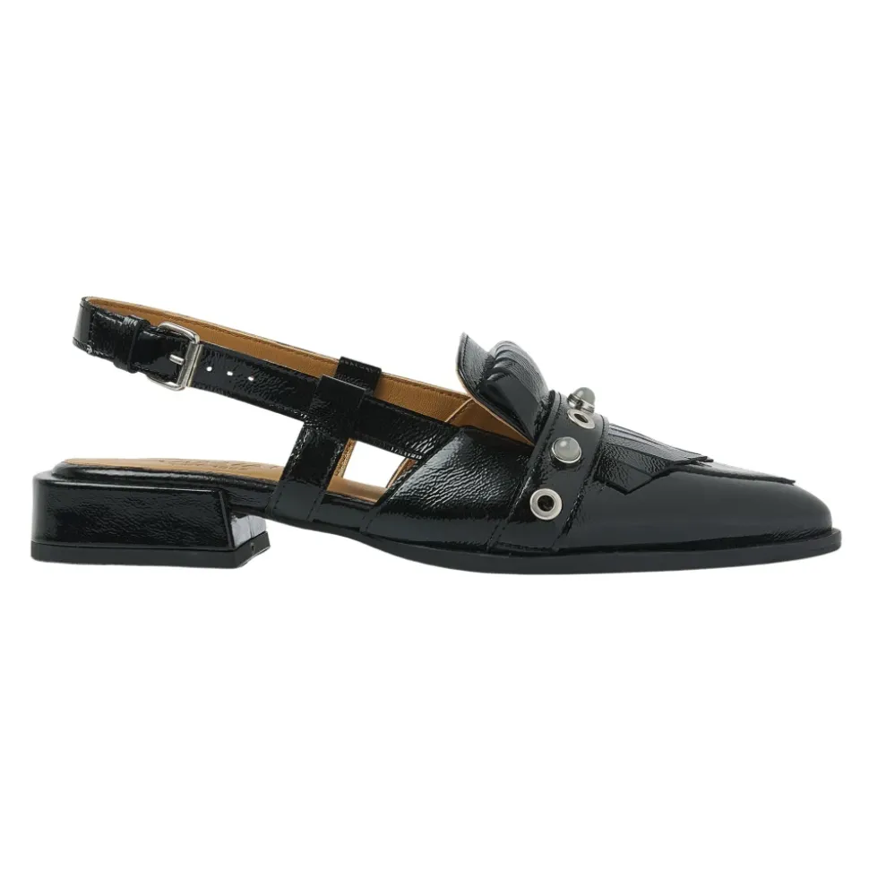 Oplev Jazz Tammi Sandaler fra Via Vai, en perfekt blanding af femininitet og kant. Disse slingbacks har en luksuriøs laklæderfinish, hvilket gør dem til en alsidig tilføjelse til enhver garderobe. Produkt detaljer: Sort | Højkvalitets laklæder | Justerbar hælstrop | Diskret blokhæl | Spids tå | Frynsedetaljer med sølv studs på vristen | Sammensætning og pleje: Læderforing