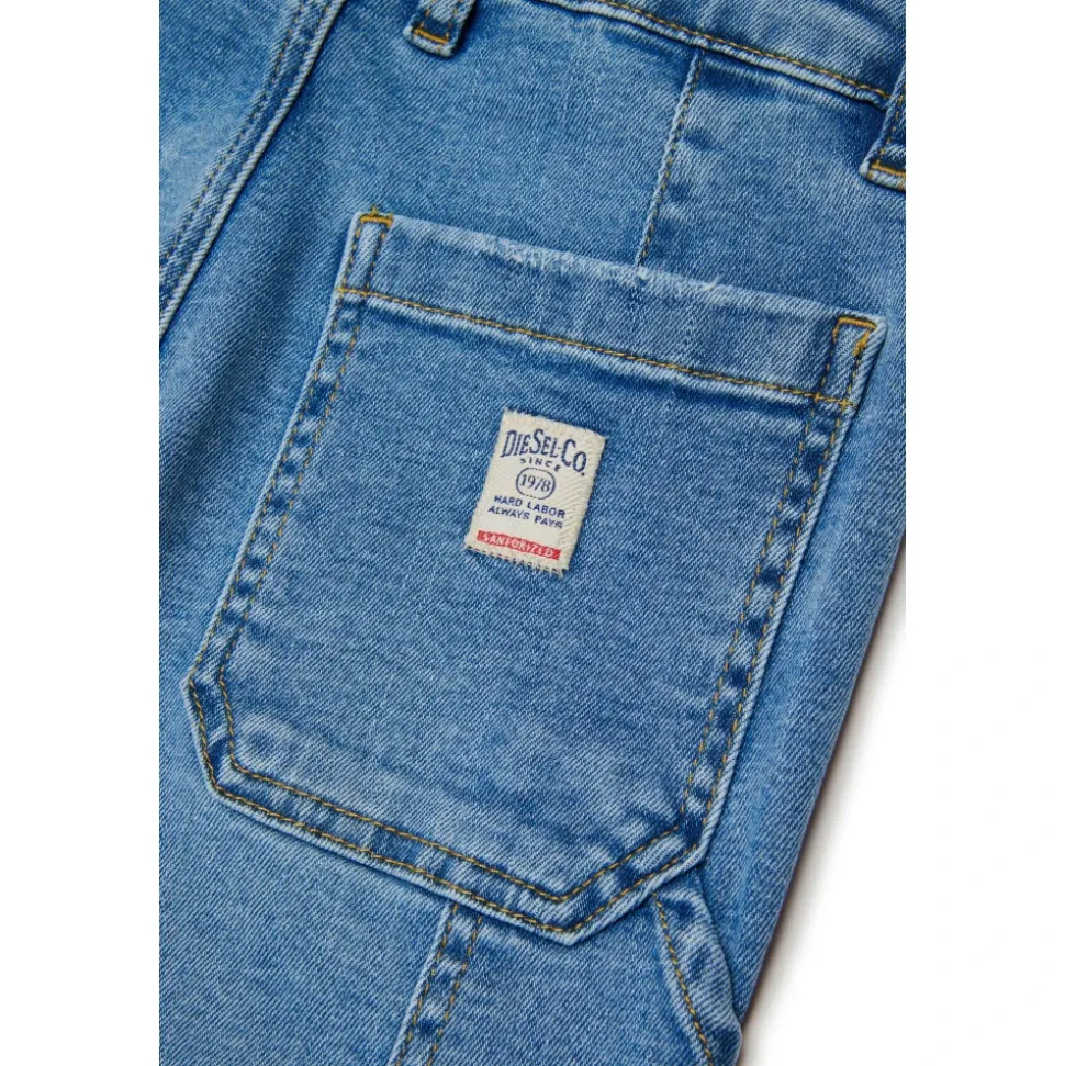 Diesel jeans med en mellemhøj, afslappet pasform og bred ben silhuet, detaljeret med cargo-lommer for praktisk hverdagsbrug. Vigtige egenskaber: Blå | Denim | Denim | Cargo-lommer | Dimensioner og pasform: Mellemhøj talje | Afslappet pasform | Brede ben