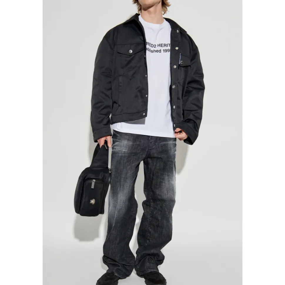 Velkommen til et mode mesterværk – de “LOOSE” JEANS fra det anerkendte mærke DSQUARED2. Kreationer fra disse visionære designere, brødrene Caten, personificerer alternativ luksus. Disse exceptionelle jeans har en LOOSE FIT med bootcut flarede ben, der giver komfort og fremhæver en unik stil. Den dominerende SORT FARVE, slidte elementer og subtil skygge giver dem et trendy, vintage look, der elegant komplementerer hverdagens påklædning. Lavet af høj kvalitet BOMULD med et strejf af elastan, sikrer de holdbarhed og fleksibilitet. Den klassiske fem-lomme finish og elegante detaljer, som DSQUARED2 logoet på en lille mærkat, understreger deres eksklusive karakter. HVORFOR SKAL DU KØBE DETTE PRODUKT? * En kombination af trendy design og behagelig pasform. * Solid kvalitet takket være premium materialer. * Unikke detaljer, der fremhæver Dsquared2 mærkets prestige. Modelens Målinger Højde: 193cm Bryst: 95cm Talje: 82cm Hofte: 93cm Modellen har størrelse: 50
