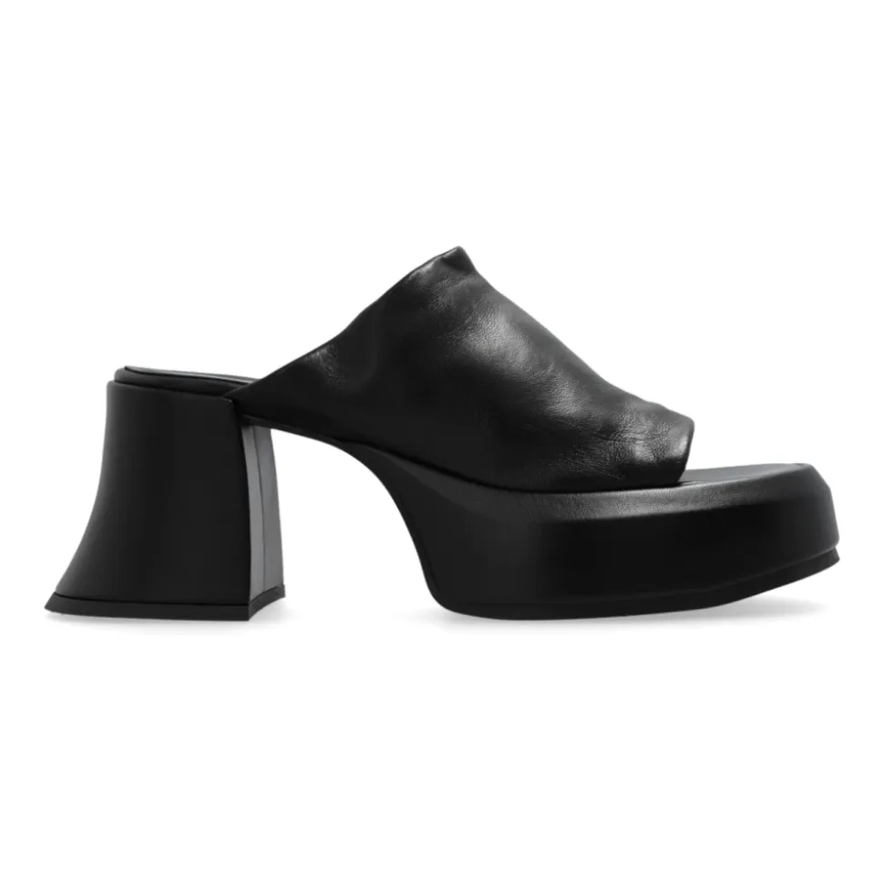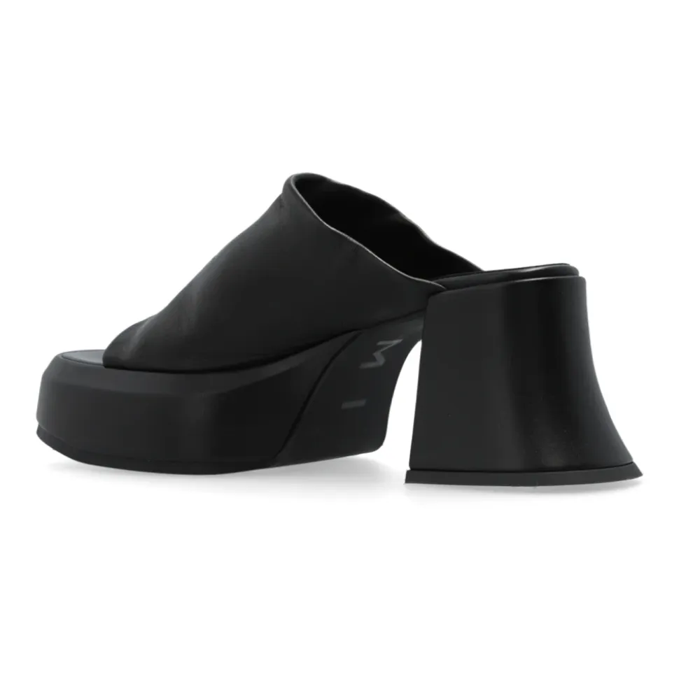 Forhøj din stil med Miista Jimena platform slides. Lavet af læder i elegant sort, har disse slides en robust platform og bred blokhæl for både mode og komfort. Det klassiske design med en bred rem over vristen sikrer stabilitet med hvert skridt. Komplet med en holdbar gummisål og subtil designerlogo, er disse slides et must-have for enhver modebevidst kvinde.