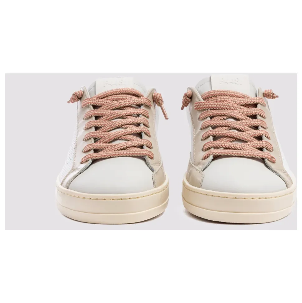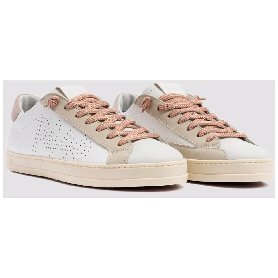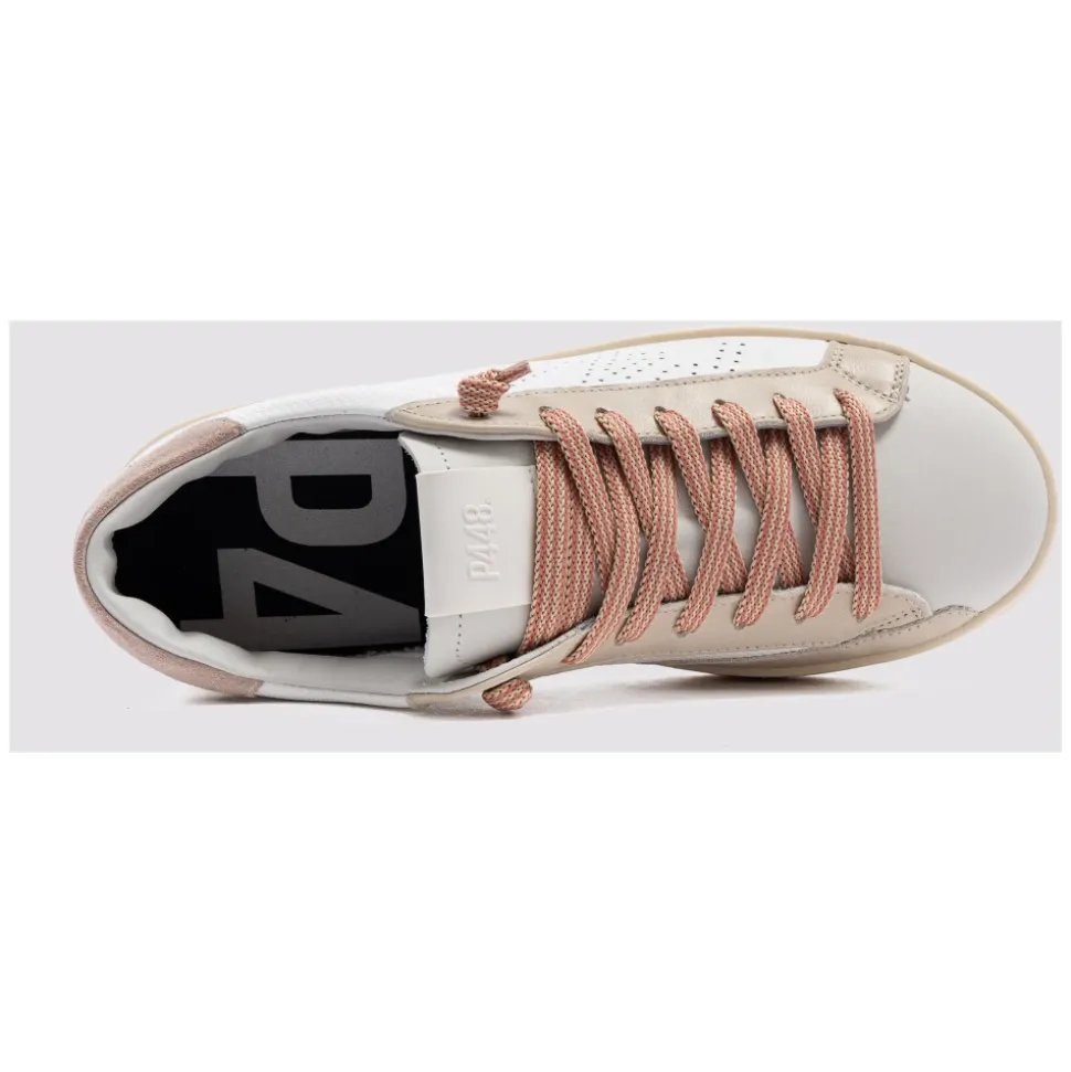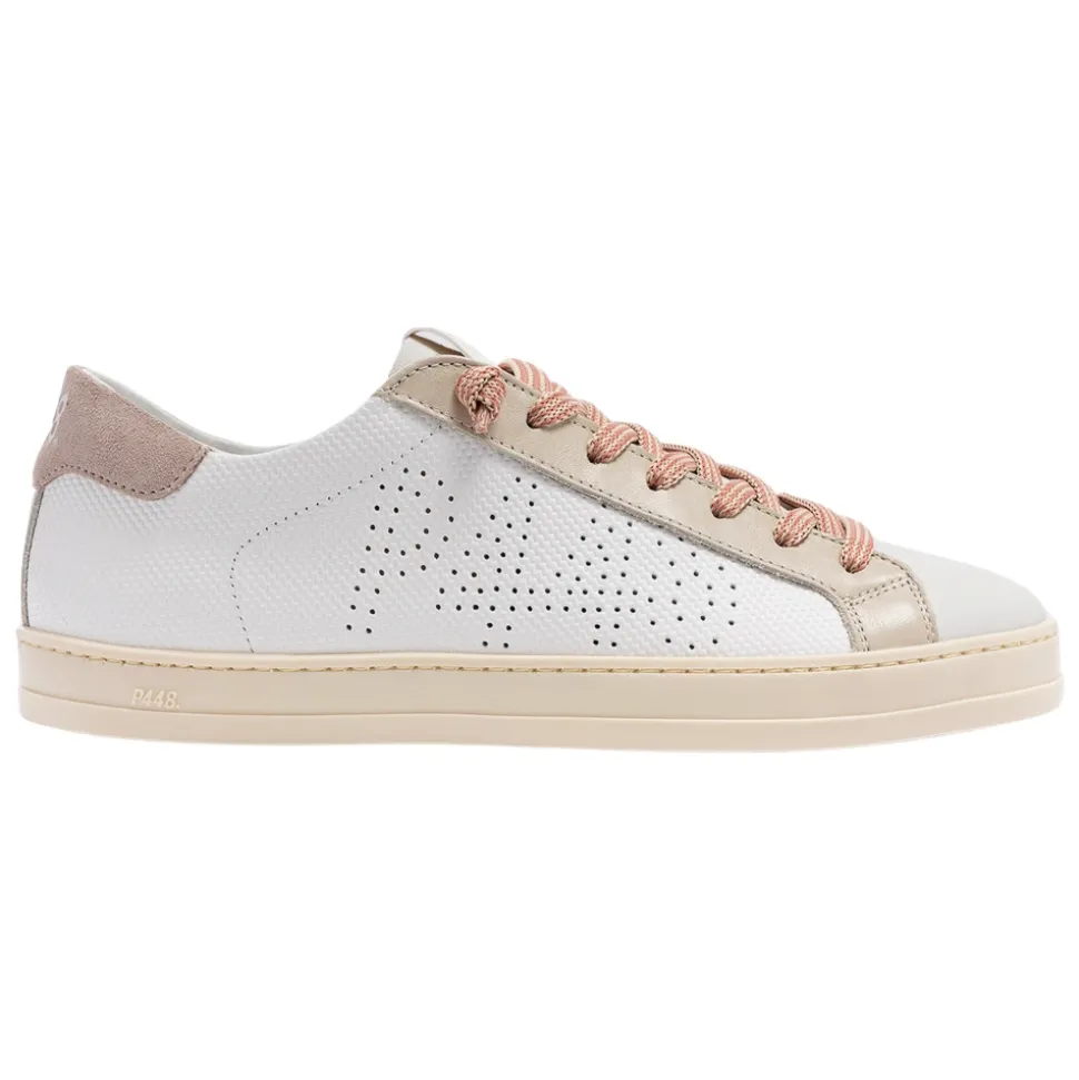P448’s John Soft er en lavprofil lædersneaker, der blander læder- og ruskindselementer med en polstret sål til hverdagsbrug. Nøgleattributter: Flerfarvet | Neutral | Læder | P448 gummisål | Memory-foam komfort | Snørelukning | Memory foam indersål | Ekstra par snørebånd inkluderet | Perforeret P448 logo | Beige ruskindshæl | Hvide teksturerede læderpaneler | Rød slidbane detalje | Pink og beige snørebånd (ekstra beige snørebånd inkluderet) | Dimensioner & pasform: Normal i størrelsen | Sammensætning & pleje: Læder | Ruskind | Frotté (foring) | Memory foam (indersål) | Gummi (sål) | Snørebånd | Tør læder af med en let fugtig klud og lad det lufttørre; behandl læder månedligt. Undgå at ruskind bliver vådt; brug en ruskindbørste til at fjerne snavs og bring den til en professionel for at fjerne pletter. Rengør snørebånd separat og nedsænk ikke skoene helt i vand.