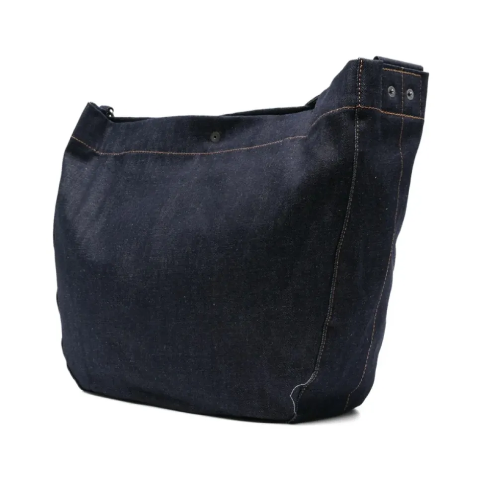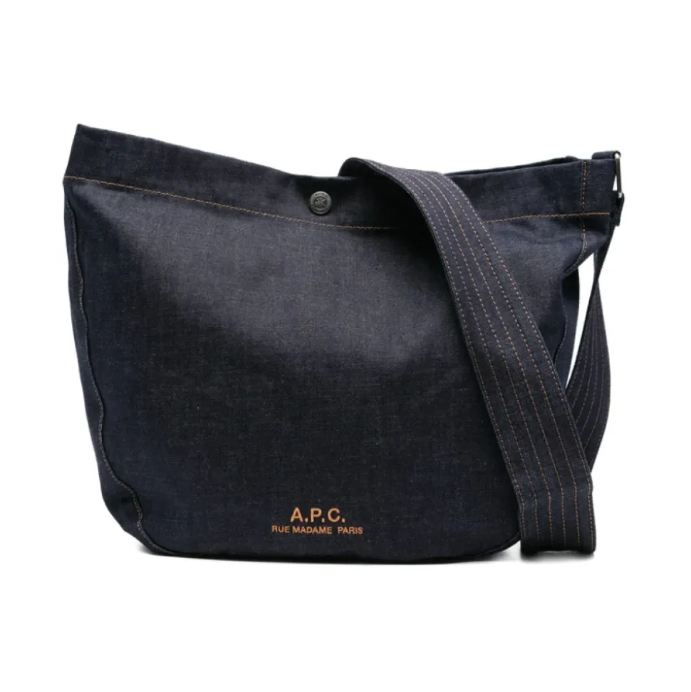 A.P.C. Journal Satchel er en kompakt crossbody taske udført i indigo japansk bomuldsdenim, designet til hverdagsbrug med en justerbar rem og sikker tryklukning. Vigtige egenskaber: Indigoblå | Bomuld | Holdbart, kraftigt stof | Justerbar rem | Indvendig lomme | Broderet logo | Satchel silhuet | Trykknaplukning | Mål og pasform: Dybde: 13.0 centimeter | Højde: 33.0 centimeter | Bredde: 45.0 centimeter | Sammensætning og pleje: 100% bomuld | Aftørres med en blød, tør klud.