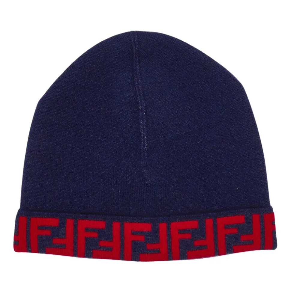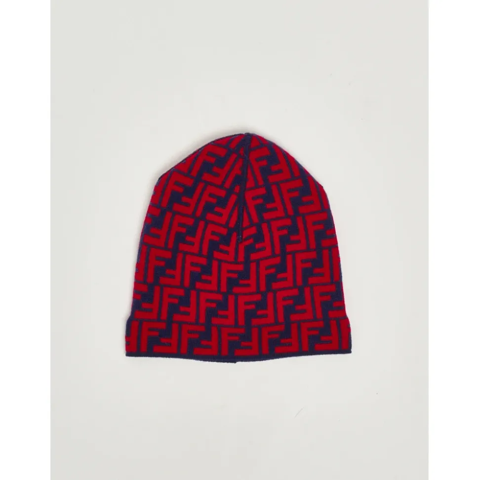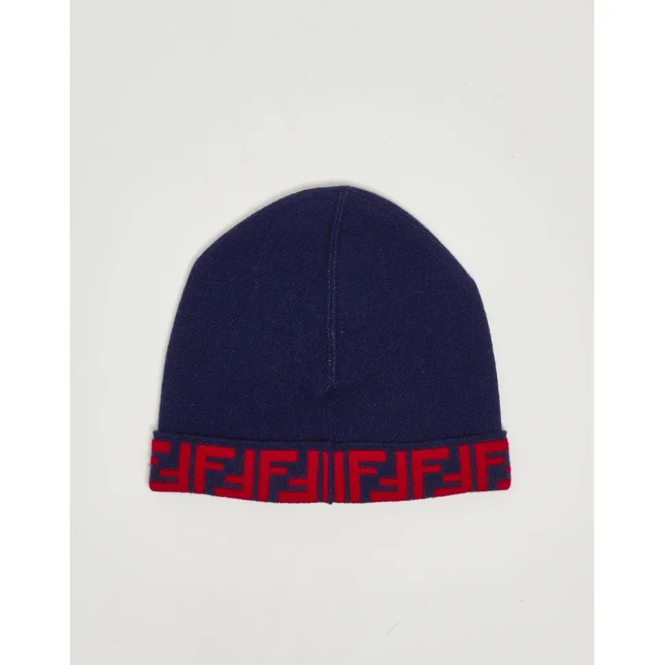 Fendi Junior Reversibel Strikket Hue kombinerer to looks i én – en ensfarvet side og en side med FF-monogram – fremstillet i en uld- og cashmereblanding for varme og hverdagsbrug. Nøgleegenskaber: Blå | Rød | Uld | Varm | Blød fornemmelse | Reversibelt design | Stretchkonstruktion for nem på- og aftagning | Om Bukket kant | All-over FF-monogram jacquard | Reversibelt strikdesign | Dimensioner og pasform: Stretch-pasform | Sammensætning og pleje: 85% uld, 10% cashmere, 5% polyamid