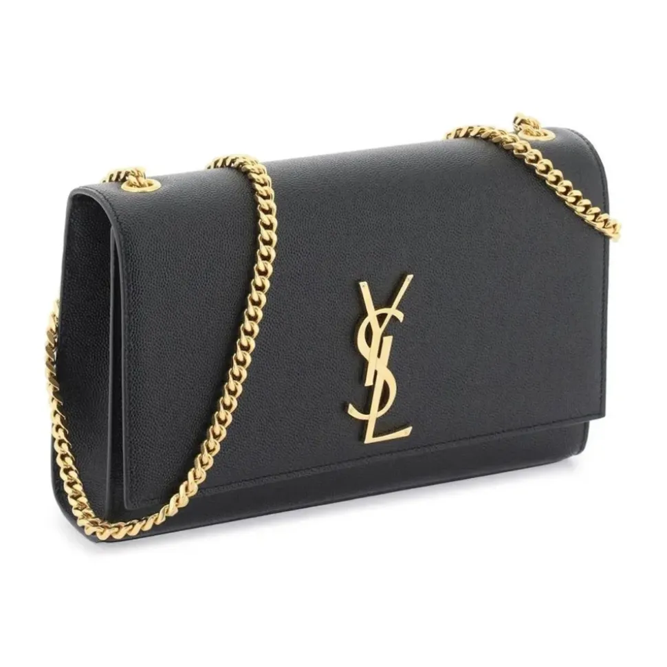 Saint Laurent Kate Skuldertaske er en kompakt læder crossbody, der kombinerer tekstureret kalveskind med det ikoniske YSL-monogram for et poleret look fra dag til aften. Nøgleattributter: Sort | Kalveskind | Crossbody-bæring | Magnetisk lukning med klap | Ikonisk sammenflettet metal YSL-monogram | Guldfarvet metal hardware | Tekstureret læder | Klap-over silhuet | Dimensioner og pasform: Højde: 15 cm | Længde: 24 cm | Dybde: 6 cm | Sammensætning og pleje: 100% kalveskind | Guldfarvet metal hardware