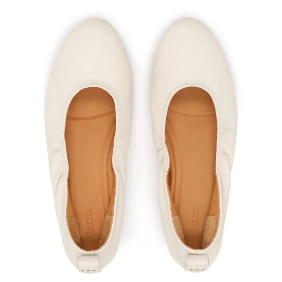 Kazar ballerinaer kombinerer diskret elegance med varig komfort, med en fleksibel læderoverdel og et guldfarvet KAZAR-monogram for en raffineret finish. Det bløde semianilin fåreskindfor sikrer behagelig brug hele dagen. Nøgleattributter: Off white | Læder | Ekstraordinær komfort | Fleksibel overdel tilpasser sig fodens form | Blødt semianilin fåreskindfor | Guldfarvet KAZAR-monogram ved hælen | Minimalistisk silhuet | Delikat finish | Sammensætning & pleje: Læder | Fåreskind (semianilin)