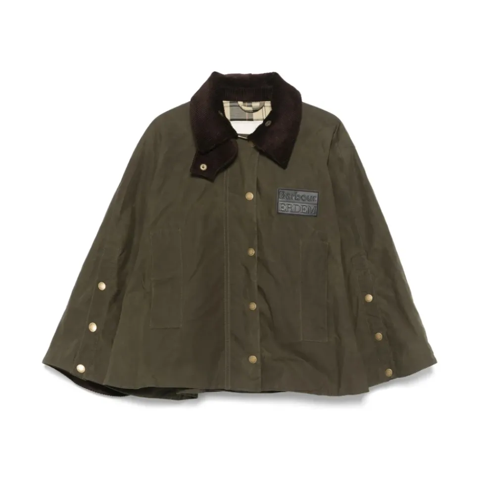Barbour khaki vendbar let jakke til kvinder med front trykknap lukning, to forlommer og trykknap lukning manchetter.