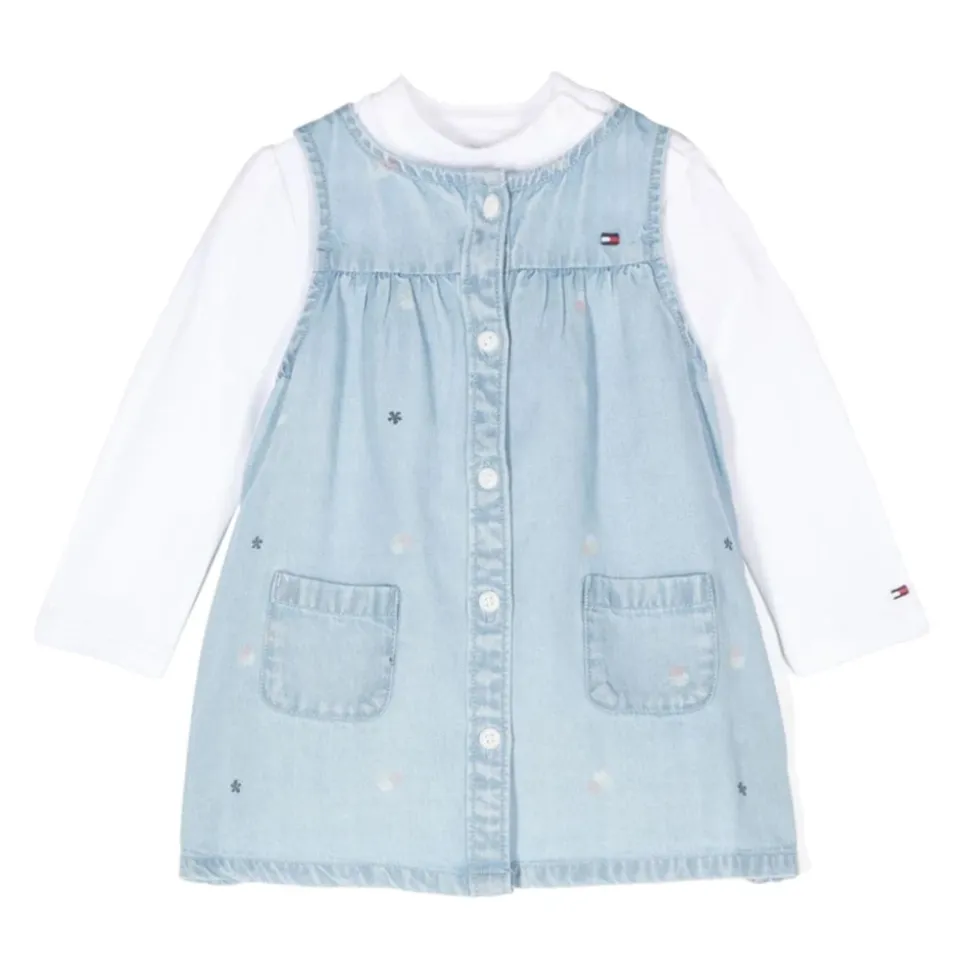 Tommy Hilfiger todelt sæt med en ærmeløs blomsterkjole parret med en langærmet t-shirt, designet til nem hverdagsbrug og lagdeling. Nøgleattributter: Blue | Blu | Lyocell | Blød overflade | Knaplukning foran (kjole) | Trykknapper på skulderen på t-shirt for nem påklædning | Påsatte lommer foran på kjolen | Blomsterprint over det hele (kjole) | Rund halsudskæring (kjole) | Ærmeløs (kjole) | Lange ærmer (t-shirt) | Lige kant | Logo på brystet (kjole) og logoprint på t-shirtens forside og ærme | Påsatte lommer foran (kjole) | Sammensætning og pleje: 100% Lyocell (SLY) | Følg vaskeanvisningerne på tøjets vaskemærke.