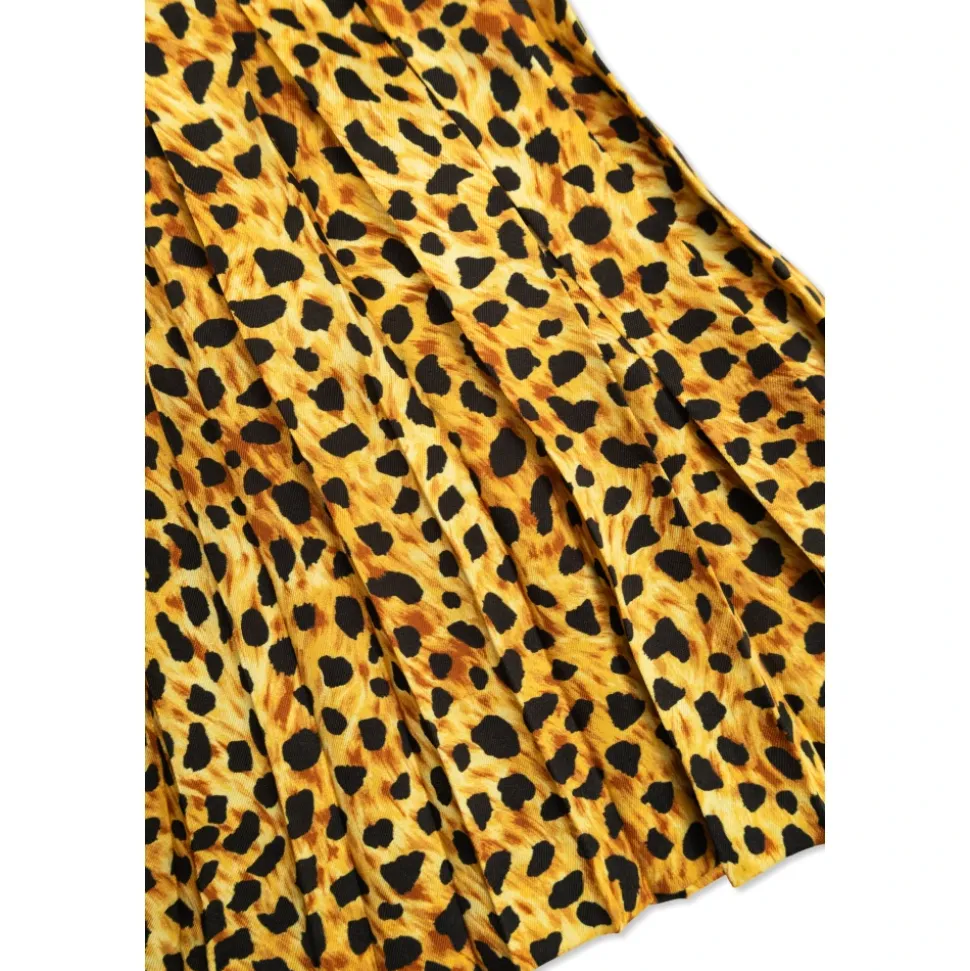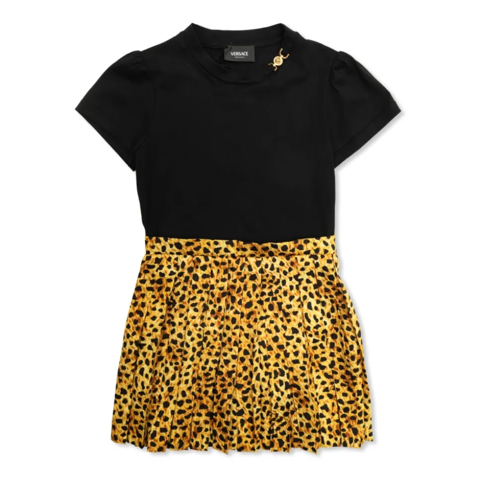 Versace præsenterer Kjolen Fremstillet af Kombinerede , et raffineret stykke tøj, der kombinerer et glat sort figursyet livstykke med en plisseret nederdel med leopardprint for at forene klassisk struktur og energiske detaljer. Nøgleattributter: Sort | Bomuld | Polyester | Komfortabel | Holdbar | Glat figursyet livstykke | Plisseret, let udskåret nederdel | Gul-sort leopardprint på nederdel | Lille applikation på skulderen | Kombinerede teksturer og kontrasterende paneler | Dimensioner og pasform: Subtilt figursyet livstykke | Plisseret, let udskåret nederdel for bevægelsesfrihed | Designet til at give komfortabel bevægelsesfrihed | Sammensætning og pleje: Bomuld | Polyester