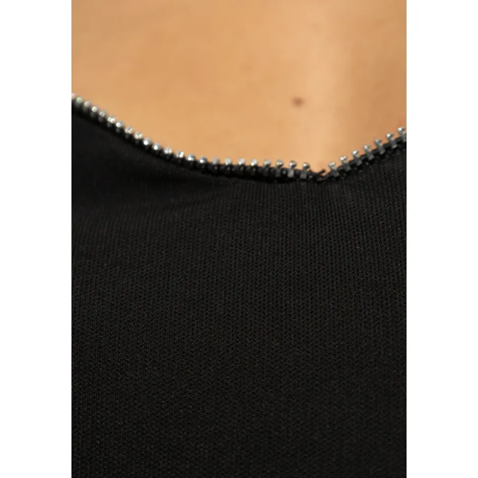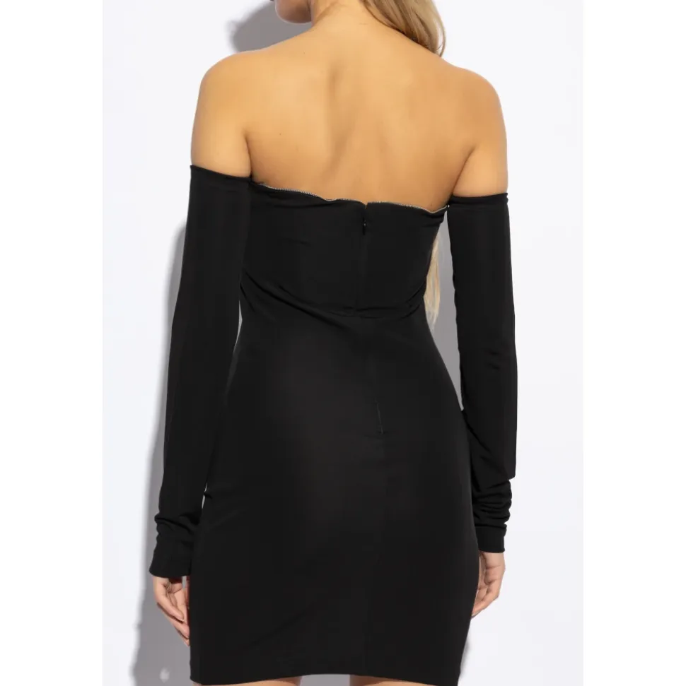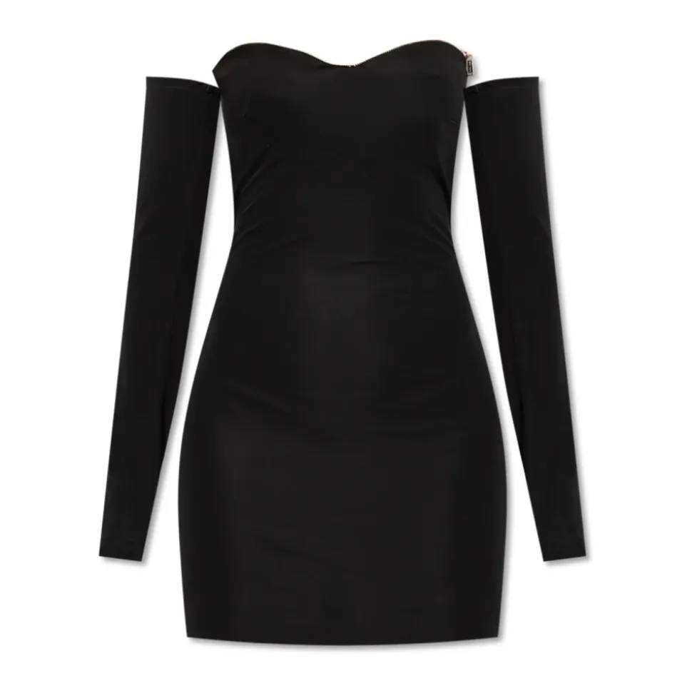 Elegance og subtil sensualitet definerer denne kjole med dekorative ærmer fra Dsquared2. Den kombinerer klassisk sort med unikke detaljer for et iøjnefaldende festlook. Produkt detaljer: Sort | Glat og strækbart materiale | Hjerteformet halsudskæring med metalliske perler | Lange, skulderafslørende ærmer | Kort længde med elegant ryg | Dimensioner og pasform: Smidigt omslutter figuren | Sammensætning og pleje: Diskret lynlås og hægte-og-øje lukning for nem påklædning