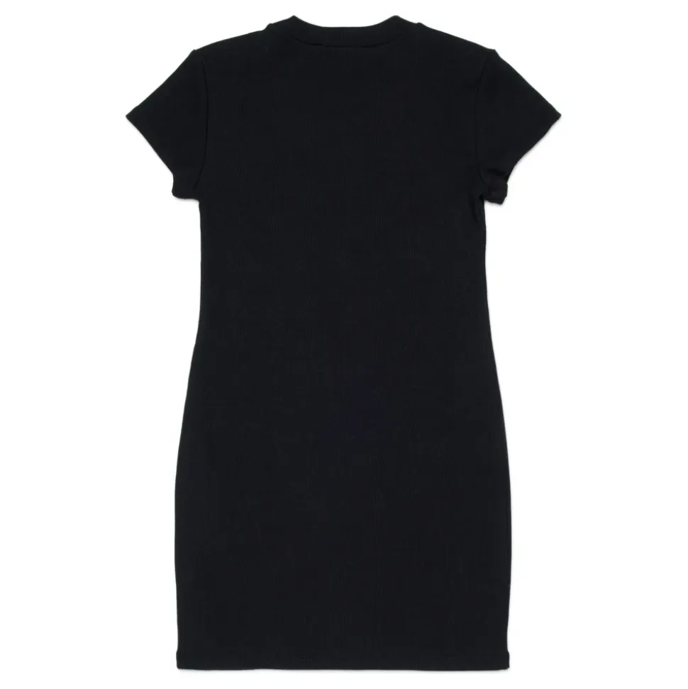 Dsquared2 ribstrikket kjole med rund hals, korte ærmer og et gummilogo, der giver en ren, brandet finish, der er velegnet til hverdagsbrug. Vigtige egenskaber: Sort | Nero | Ribstrikket tekstur | Korte ærmer | Rund hals | Gummilogo detalje