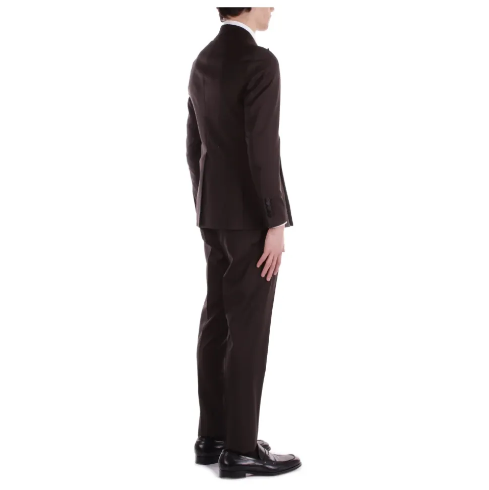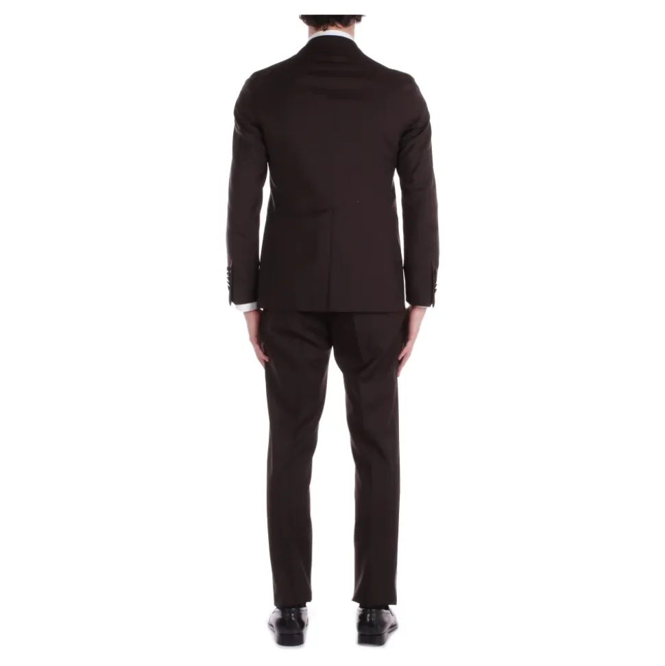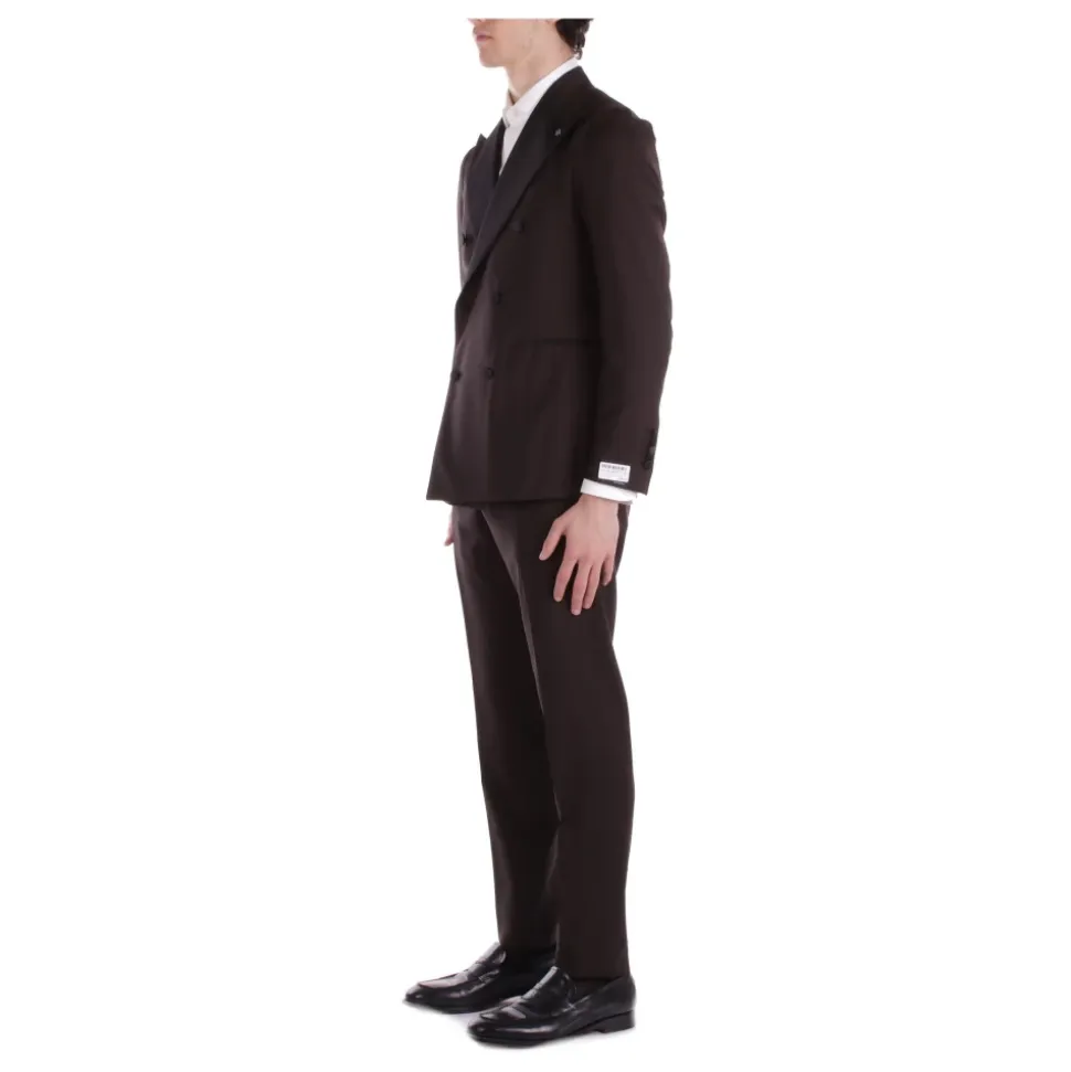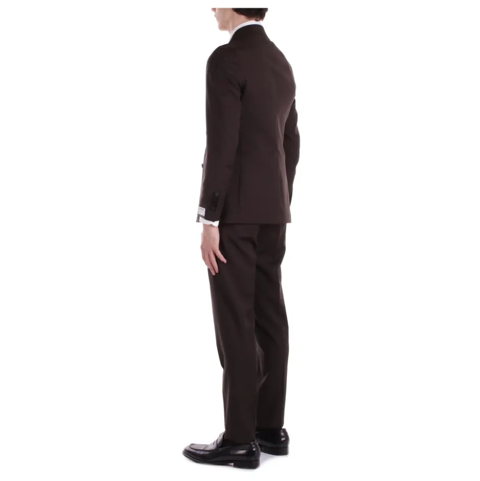 Herresuit Tagliatore Dobbeltbrystet jakke med knapper Bukser med lynlås og krog Bukser med to sidelommer og baglomme Jakke med to sidelommer Modelhøjde: 1,83 cm Størrelse brugt: 48 ita Pasform: slim Materiale: 100% ren ny uld, foring 100% cupro, foring af bukser 100% bomuld Leverandørkode: PELIS 150153M1027