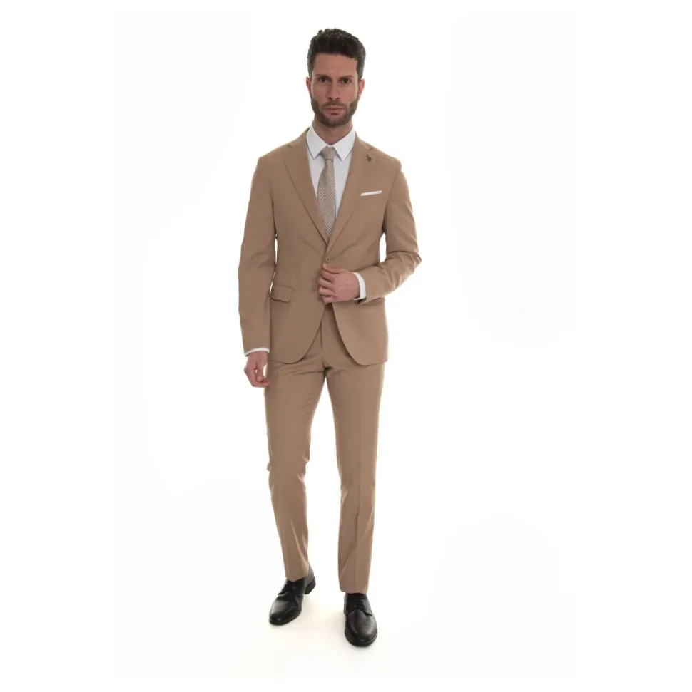 Forkæl din formelle stil med dette Paoloni single breasted suit sæt. Med en 2-knaps jakke med sideslidser og klassiske bukser, er dette sæt lavet af en blanding af polyester, uld og elastan. Jakkelængden er 73 cm (størrelse 50) med knap og skjult lynlåslukning. Sammensætning: 54% polyester, 44% uld, 2% elastan. Indvendig foring: 100% viskose.