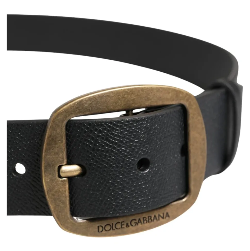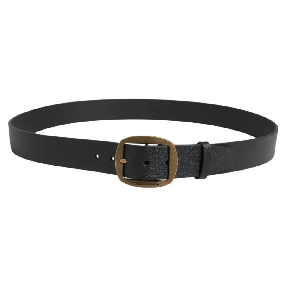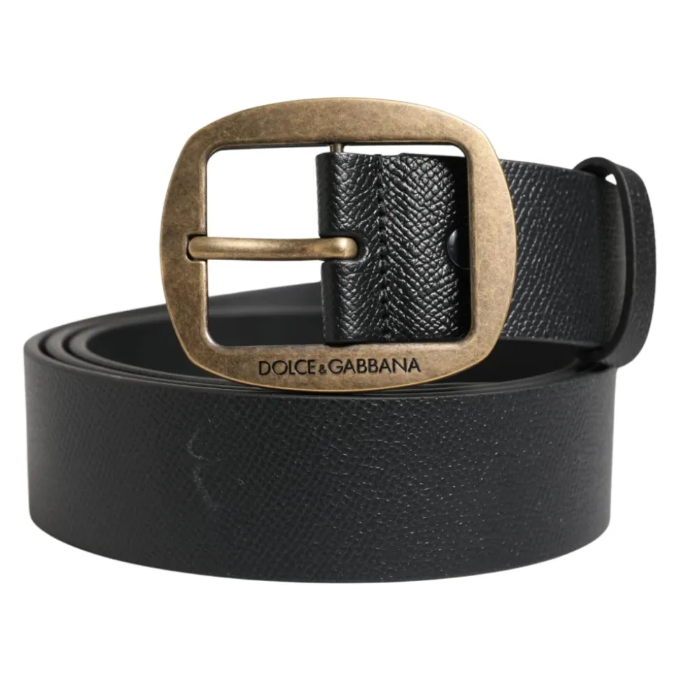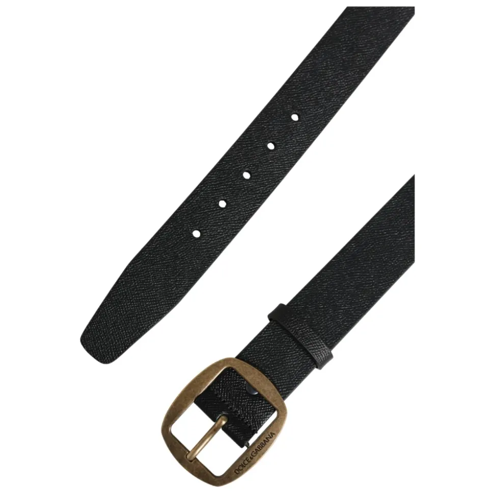 Dolce & Gabbana Klassisk Læder Bælte med Metalspænde kombinerer glat kalveskind med en guldfarvet metalspænde for et elegant hverdags-accessory. Nøgleattributter: Sort | Kalveskind | Metalspænde lukning | Guldfarvet metalspænde | Logo detalje | Dimensioner & pasform: Bredde: 4 cm | Sammensætning & pleje: 100% Kalvelæder | Guldfarvet metalspænde