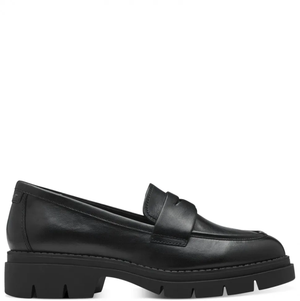 Oplev den tidløse elegance ved den Klassiske Læder Loafer fra Tamaris, med bløde touch-it indlægssåler for uovertruffen komfort. Produkt detaljer: Sort | Læder | Bløde touch-it indlægssåler | Gummi ydersål | 4 cm hæl | Dimensioner og pasform: Normal i størrelsen |
