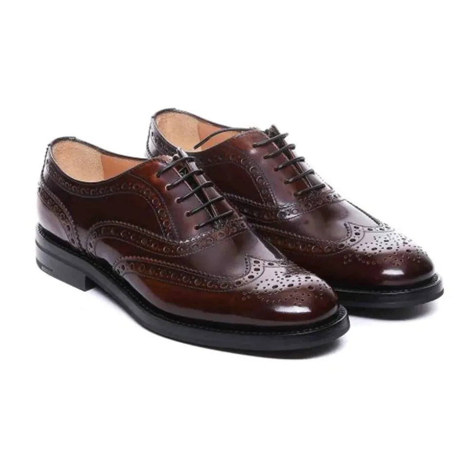 Church’s klassiske Derby-sko i læder med snørebånd kombinerer en poleret patentfinish med brogue-perforering for et smart, skræddersyet look. Ideelle til arbejde eller et raffineret casual outfit, de kombinerer klassiske detaljer med en slidstærk gummisål. Vigtige egenskaber: Brun | Kalveskind | Snørelukning foran | Læderindersål | Gummisål | Rund snude | Patent effekt | Perforerede detaljer | Brandet indersål | Sammensætning & pleje: 100% kalveskind | Indvendigt: Læder | Indersål: Læder | Sål: Gummi