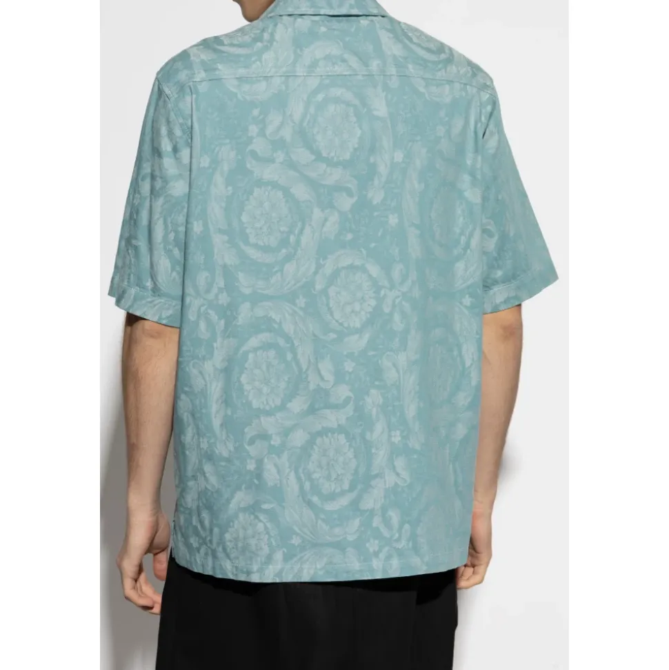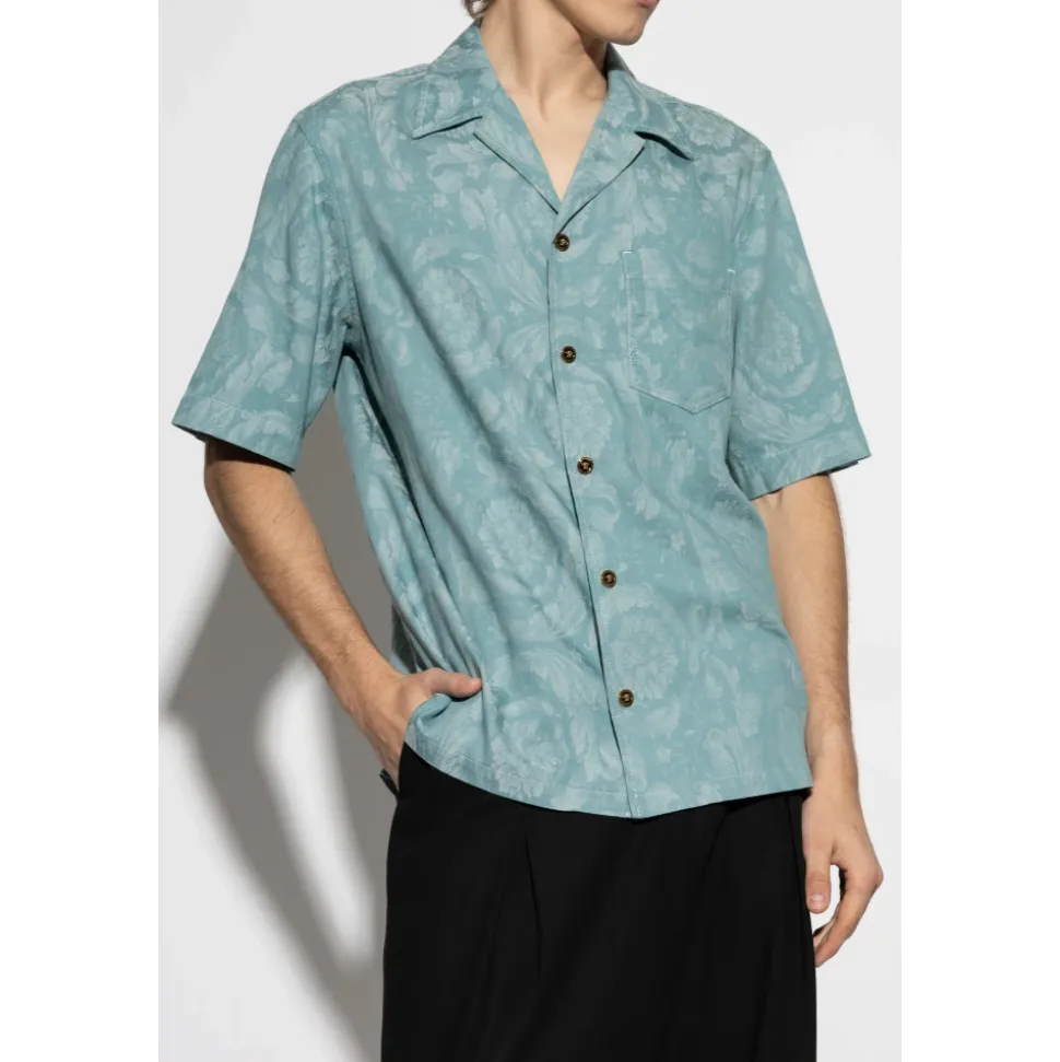 KORTÆRMET SKJORTE fra Versace udtrykker essensen af moderne elegance, der kombinerer kunsthåndværk med enestående komfort. Den klassiske, afslappede pasform med en lige kant fremhæver dens tidløse karakter, mens det subtile ornamentmønster i blå nuancer tilføjer sofistikering og forbliver en diskret æstetisk accent. Den ekstremt omhyggeligt færdige bomuldsstof – let glansfuldt og behageligt at røre ved – garanterer brugskomfort og understreger produktets eksklusive oprindelse. Klassiske knapper og en let sænket skulderlinje demonstrerer perfekt mesterskabet i italiensk håndværk. Denne skjorte er en udtryk for prestige og modet til at fejre individualitet, hvilket gør den til det perfekte valg for kenderne af raffineret stil. HVORFOR VÆLGE DETTE PRODUKT? * Eksklusivt Versace-design inspireret af italiensk tradition * Perfekt kombination af komfort og sofistikering * Høj kvalitet bomuldsstof sikrer holdbarhed * Omhyggeligt designede detaljer og mesterlig finish Modelmålinger Højde: 185 cm Bryst: 92 cm Talje: 74 cm Hofter: 91 cm Modellen har størrelse: 50