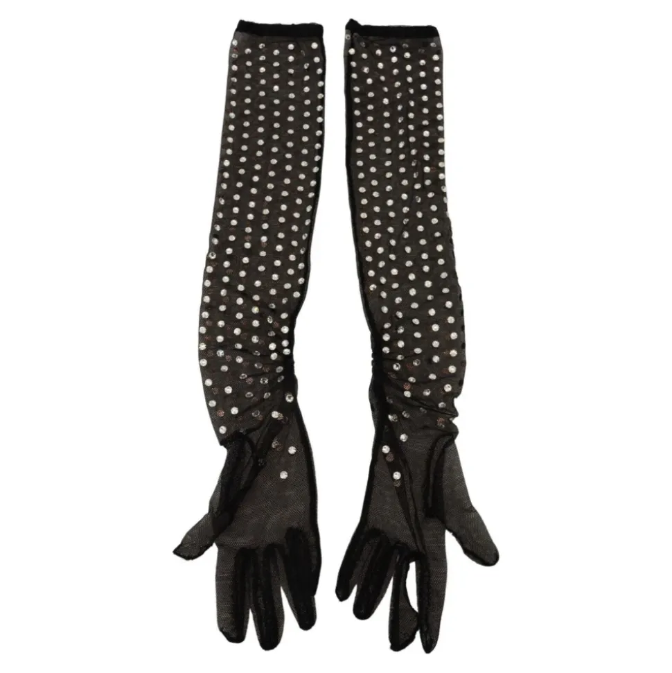 Krystalpyntet Mesh Handsker Sort Bomuld Italien