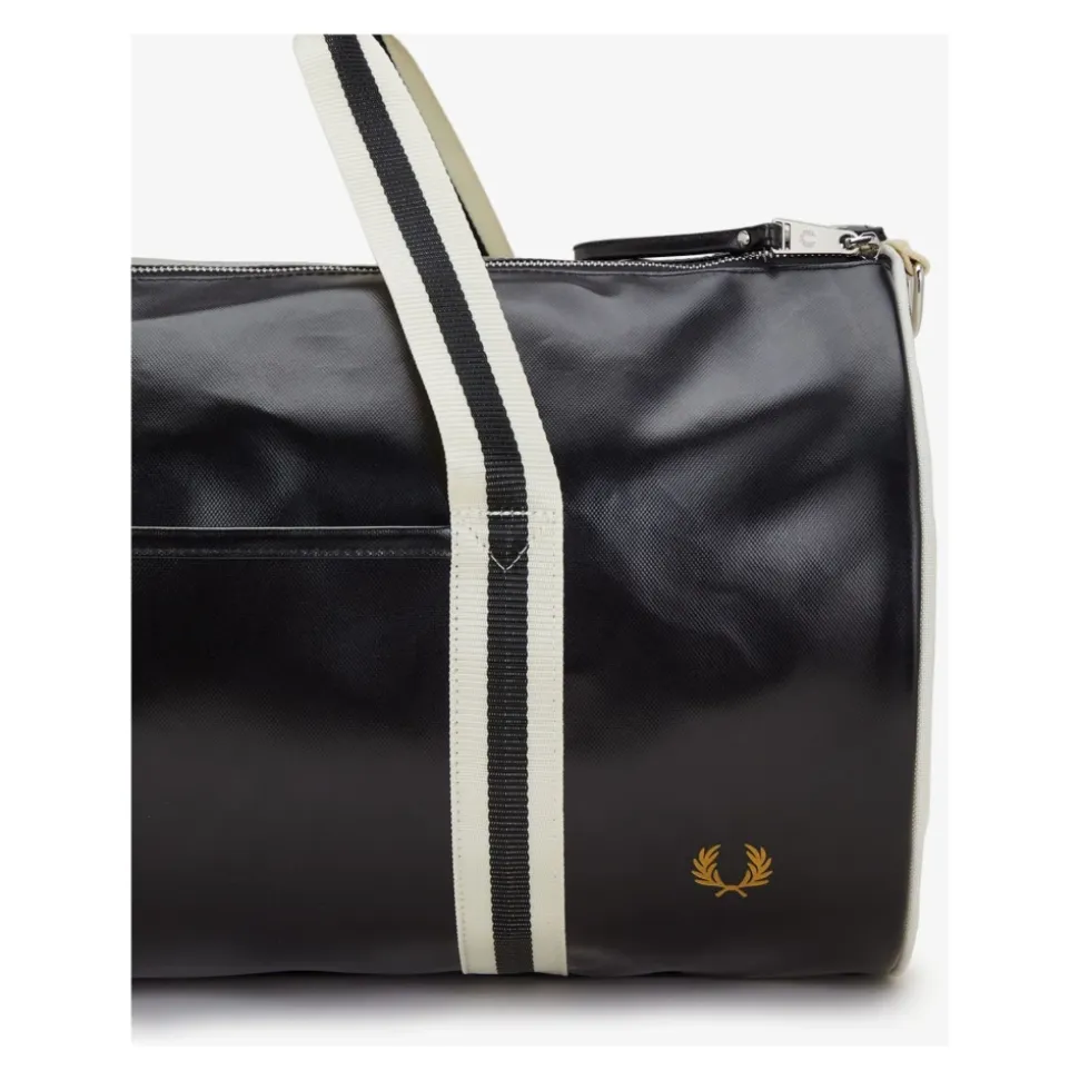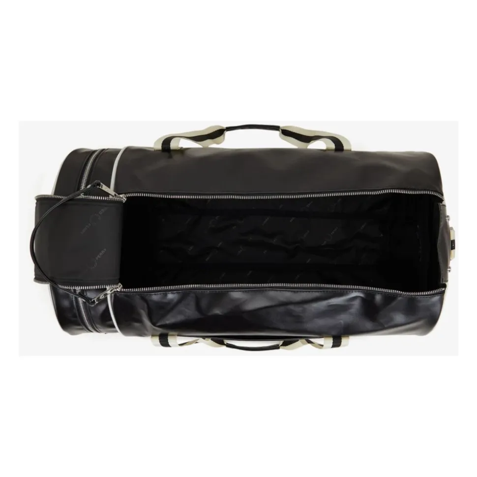 Fred Perry L9266 D57 Oversized Weekendtaske er en ekstra stor sportstaske designet til weekendture og hverdagsrejser, med en TPU-belagt polyesteroverflade for øget vand-, UV- og slidstyrke. Nøgleattributter: Sort | Polyester | Vandafvisende | UV-bestandig | Slidstærk | Dobbelt lynlåsåbning foroven | Lynlåsrum i enden | Justerbare crossbody-stropper | To bærehåndtag foroven med ribkant | Kan bæres crossbody eller i hånden | Guldfarvet laurbærkrans-prægning på frontpanelet | Kontrastlogo på endepaneler | Afrundet endelomme | Ribkant på bærehåndtag | Mål & pasform: Ekstra stor størrelse, der er velegnet til weekendture og sportsrejser | Sammensætning & pleje: 100% polyester | Må ikke vaskes. Tørres af med en fugtig klud.