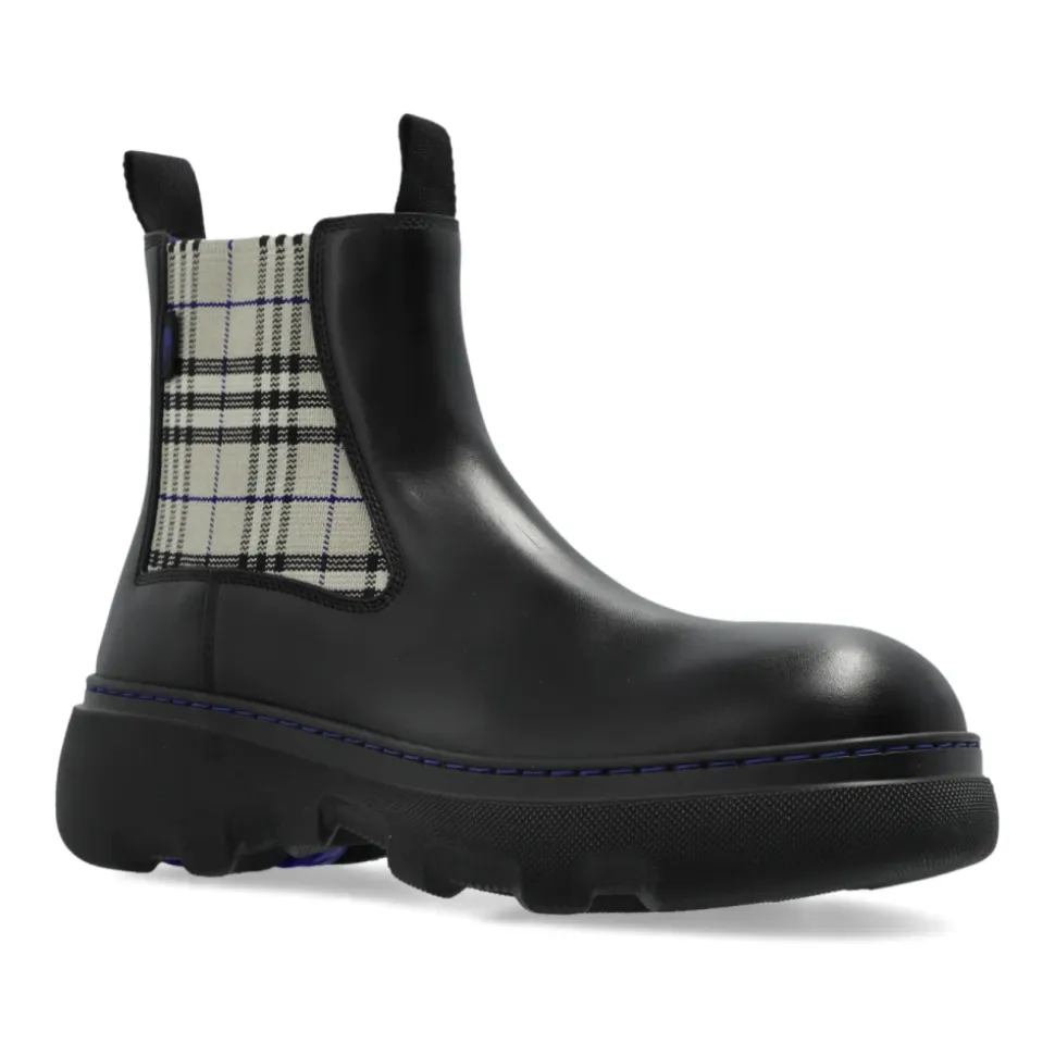 Oplev den sofistikerede skønhed ved Leather Chelsea Boots Creeper fra Burberry. Disse støvler er fremstillet af førsteklasses sort læder og kombinerer elegance med et unikt ternet design. Produkt detaljer: Sort | Læder | Elastiske indsatser | Trækstropper | Rund tå | Ternet mønster | Kraftig gummisål | Dimensioner og pasform: Normal pasform | Sammensætning og pleje: Læder 100% | Specialrensning kun