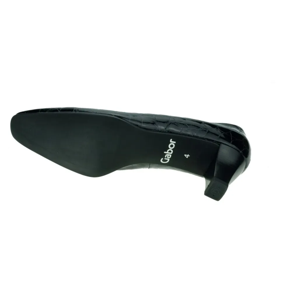Løft din stil med Gabors læder pumps, fremstillet med et fantastisk croco-print læder og en komfortabel 4,5 cm hæl, perfekt til enhver lejlighed. Produkt detaljer: Grå | Læder | Croco print | Sammensætning og pleje: Læder