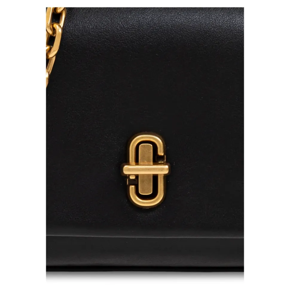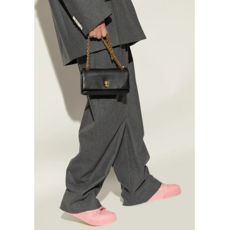Opdag SOFISTIKERET ELEGANCE med en sort skuldertaske fra den anerkendte designer Marc Jacobs. Denne KLASISKE, REKTANGULÆRE model er lavet af læder af højeste kvalitet, hvilket understreger dens luksuriøse karakter. Den dominerende sorte farve med subtile gyldne accenter, såsom skulderkæden og ‘twist’-lukningen, giver tasken en universel charme. Den karakteristiske gyldne lås foran og