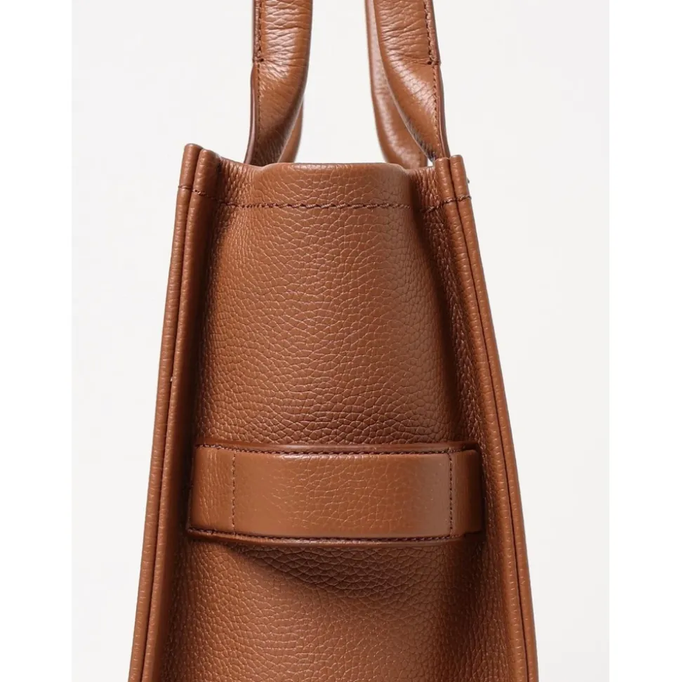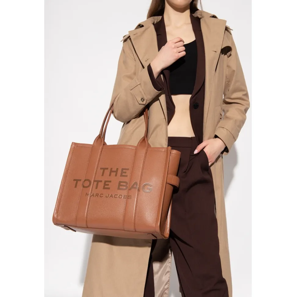 Forhøj din stil med denne luksuriøse Marc Jacobs ‘The Leather Large Tote’ taske i rig brun fuldkornet læder. Med to tophåndtag, lynlåslukning, flere lommer og et elegant logodesign. Mål: Længde 42 cm, Dybde 16 cm, Højde 34 cm, Håndtag 24 cm. Lavet af 100% læder.