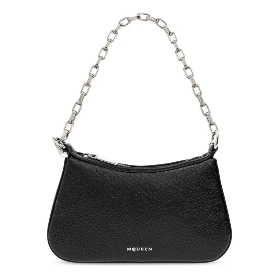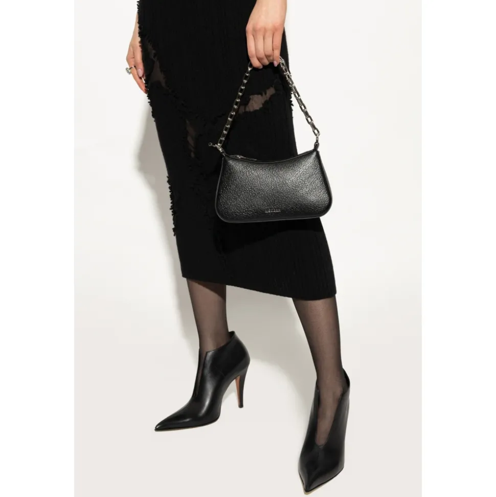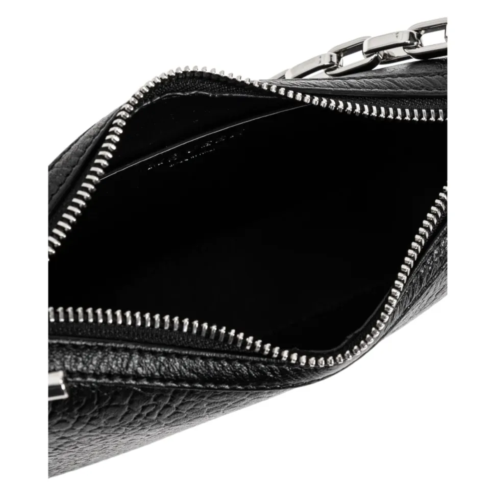 Introducerer ‘T-BAR MINI’ LÆDER TASKE fra den eksklusive ALEXANDER MCQUEEN kollektion, som begejstrer med sin elegance og funktionalitet. Lavet af den højeste kvalitet sort lammeskind læder, beriget med en tydelig tekstur, symboliserer den luksus og sofistikering. Tasken har en rektangulær form med subtilt afrundede kanter, hvilket giver den et moderne udseende. På forsiden er der en delikat, metal logo.