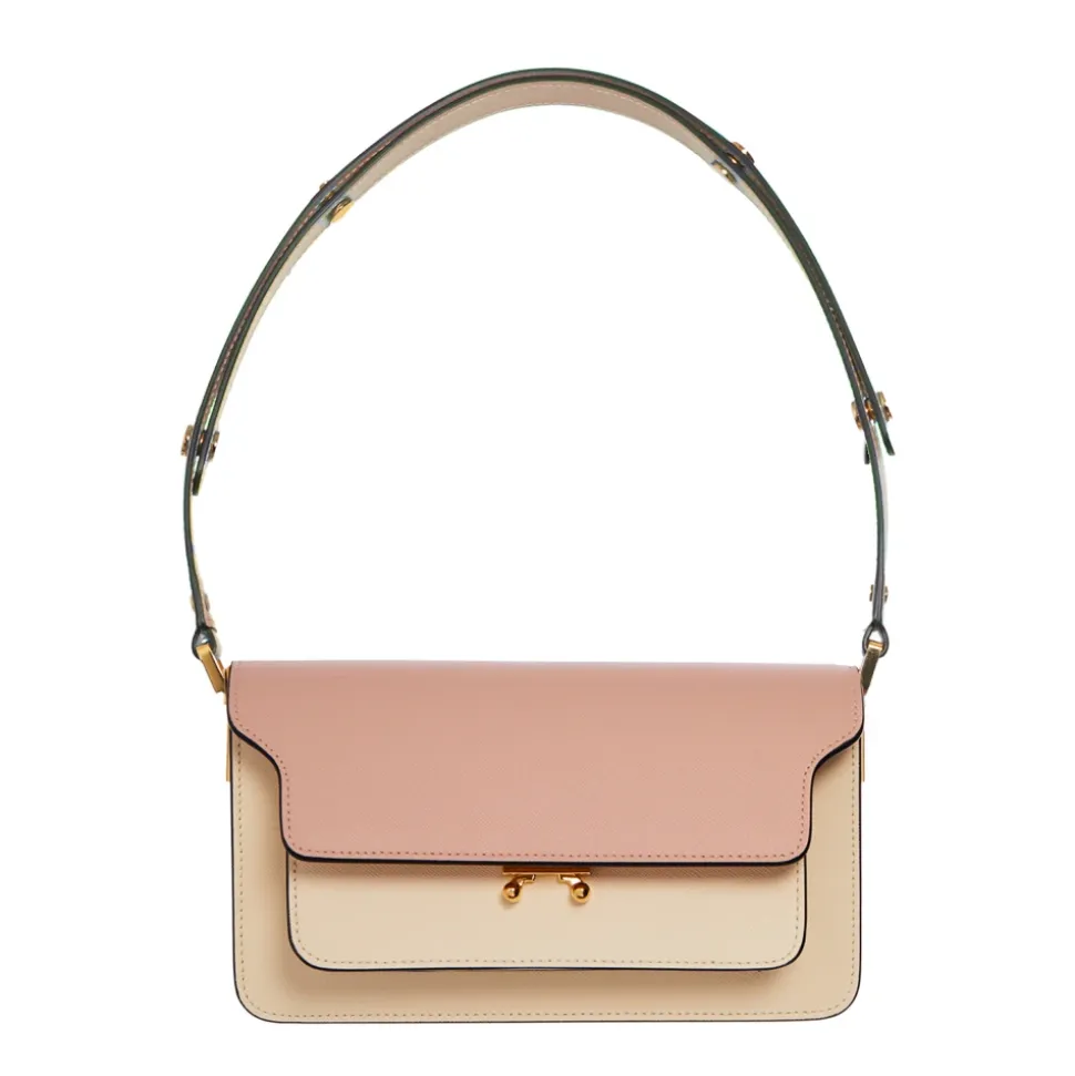 Løft din stil med Marni Læder Trunk Tasken, et elegant tilbehør med en sofistikeret push-lock lukning og justerbar læder skulderrem. Produkt detaljer: Pink | Læder | Justerbar læder skulderrem | Lynlåslomme | Tre indvendige rum | Frontlomme under klappen | Bageste slidsrum | Push-lock lukning | Stof lining | Dimensioner og pasform: Bredde 23 cm | Højde 12 cm |