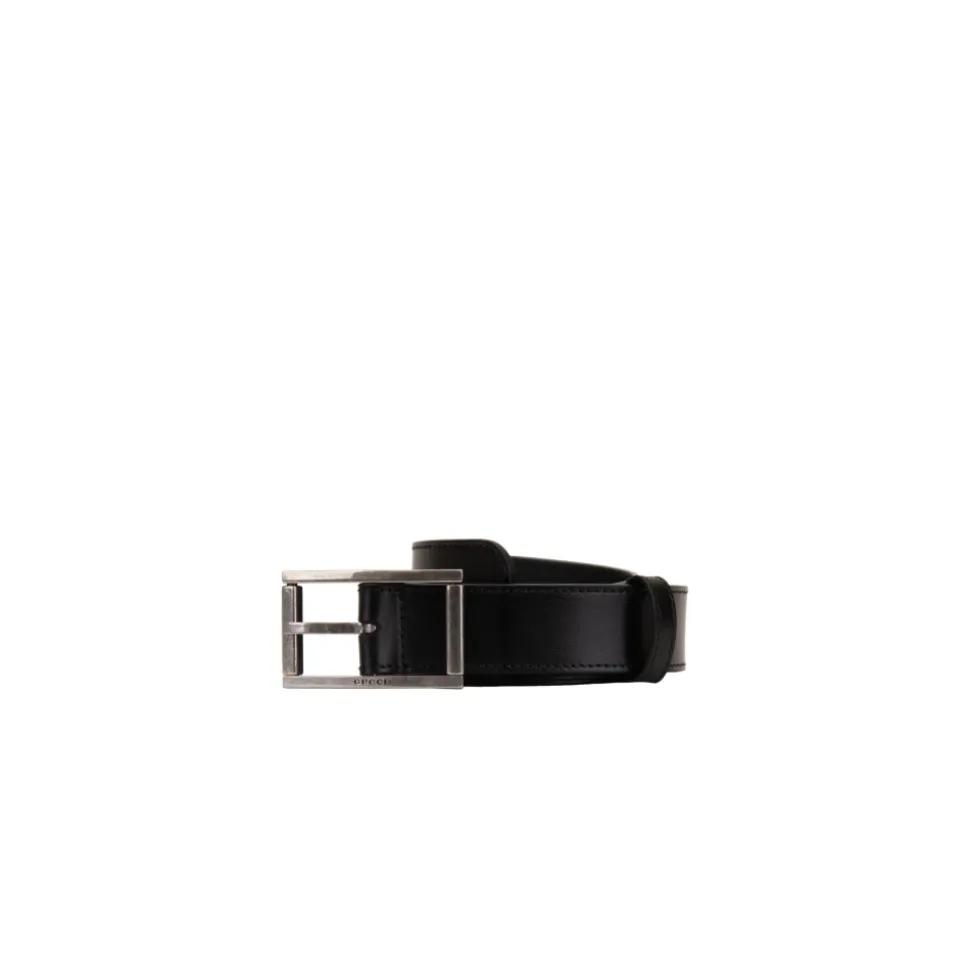 Gucci læderbælte fremstillet af glat læder og afsluttet med et sølvfarvet logo-spænde. Et elegant, justerbart bælte designet til hverdagsbrug og raffineret styling. Vigtigste egenskaber: Sort | Nero | Læder | Justerbar størrelse | Spænde lukning | Sølvfarvet logo-spænde | Glat læderrem | Minimal, tidløs silhuet | Mål og pasform: Højde (cm): 3 | Længde (cm): 103(90), 108(95), 113(100), 118(105), 123(110) | Justerbar pasform | Sammensætning og pleje: Læder | Metal hardware (sølvfarvet) | Beskyt mod direkte lys, varme og regn. Hvis vådt, tør straks med en blød klud. Opbevar i den medfølgende støvpose eller æske. Rengør med en blød, tør klud.