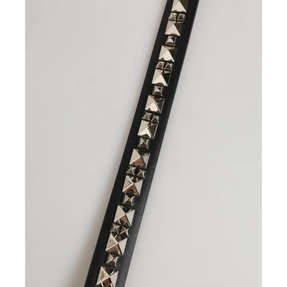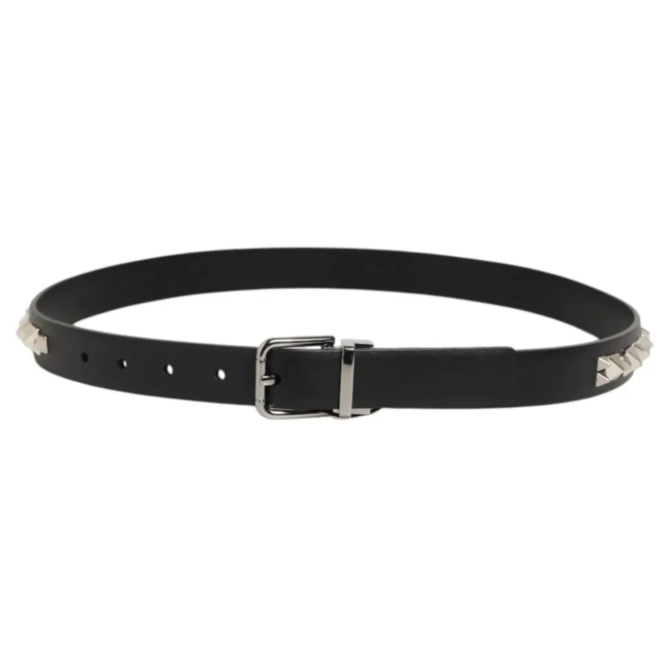 Dolce & Gabbana Læderbælte med sølvfarvet spænde og nitter kombinerer dristige nitter med en poleret sølvfarvet spænde. Fremstillet i Italien af førsteklasses læder, fungerer det som et markant finish-tilbehør. Nøgleattributter: Sort | Læder | Sølvfarvet metalspænde | Nittedesign | Logodetaljer | Poleret sølvfarvet spænde | Sammensætning & pleje: 100% Læder | 100% Kalv