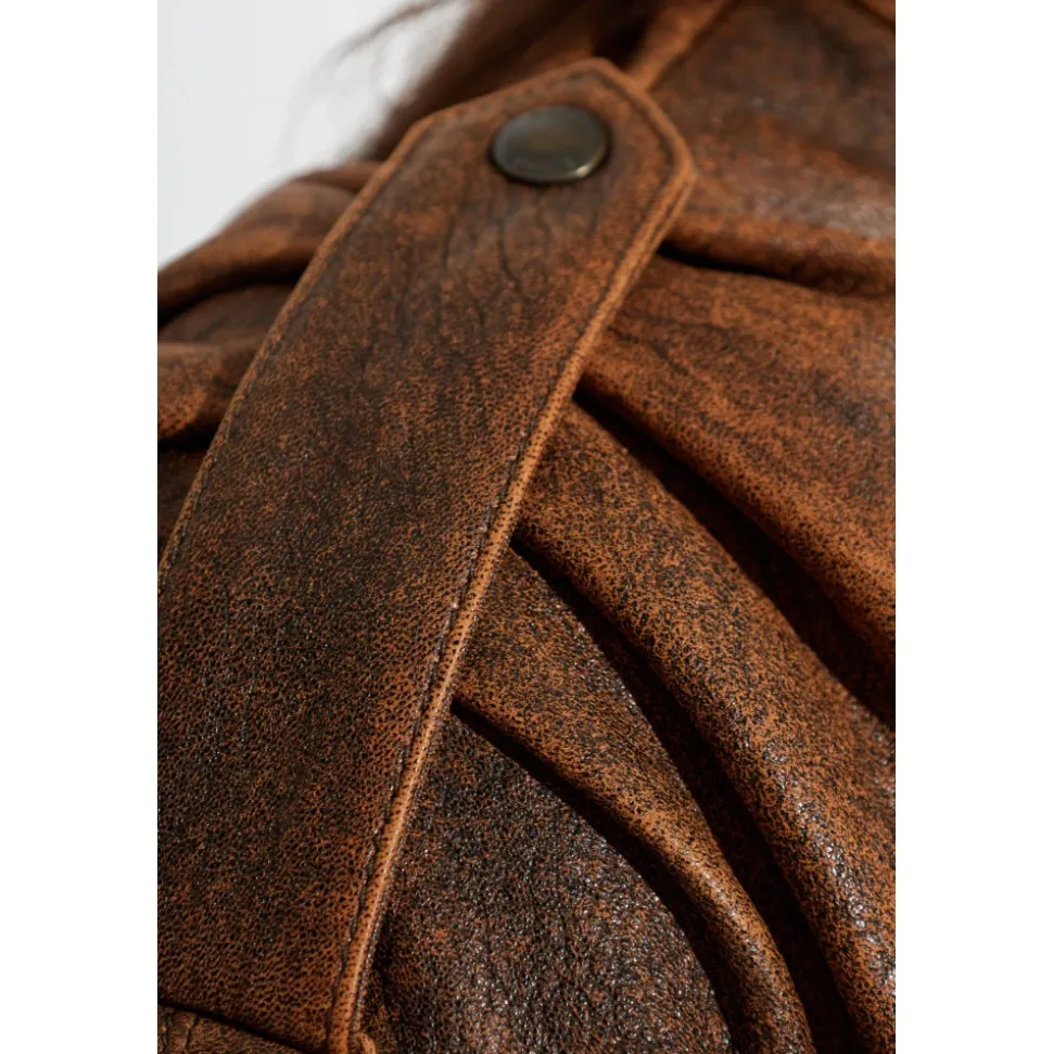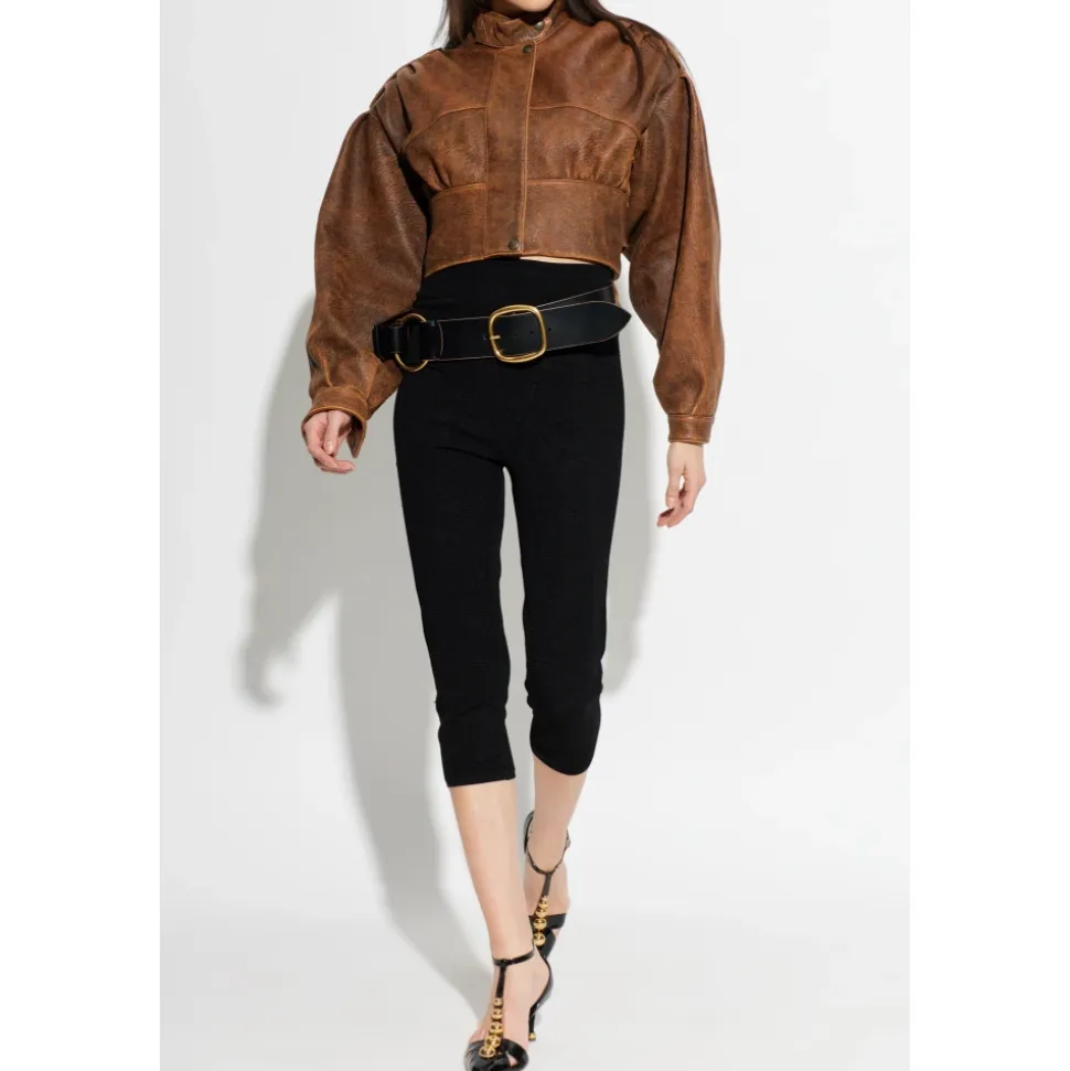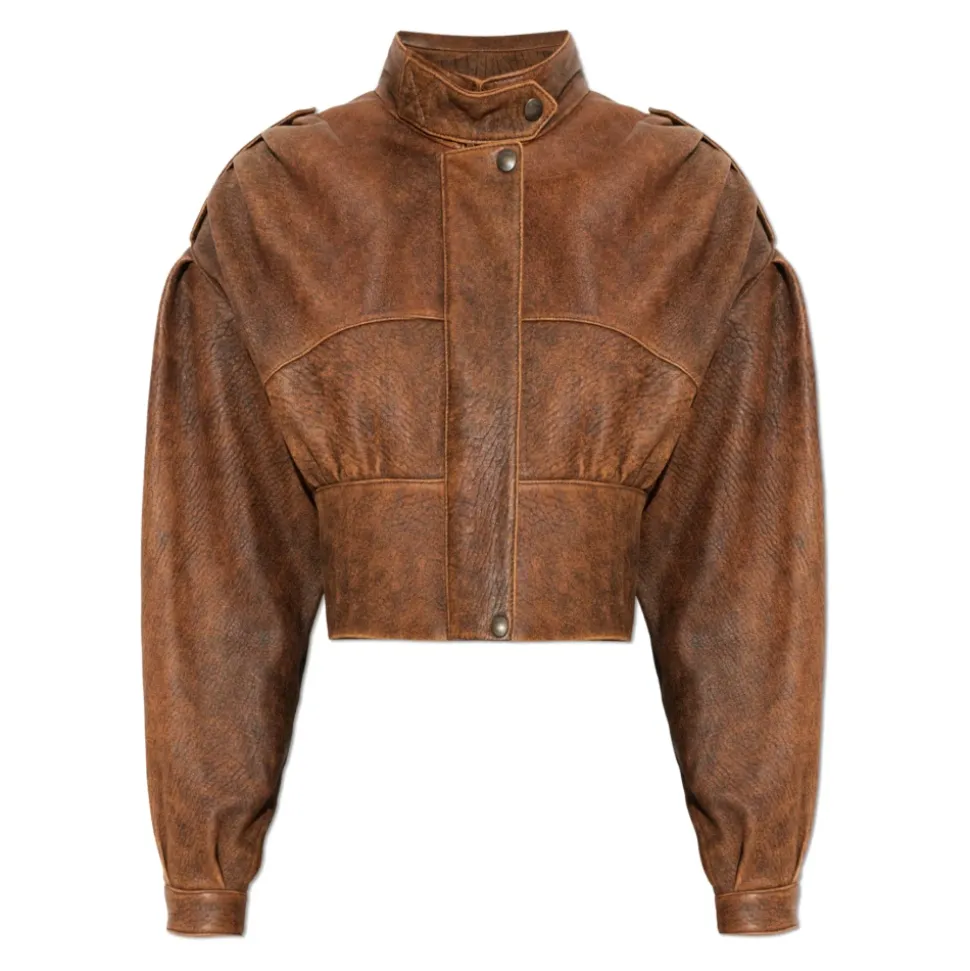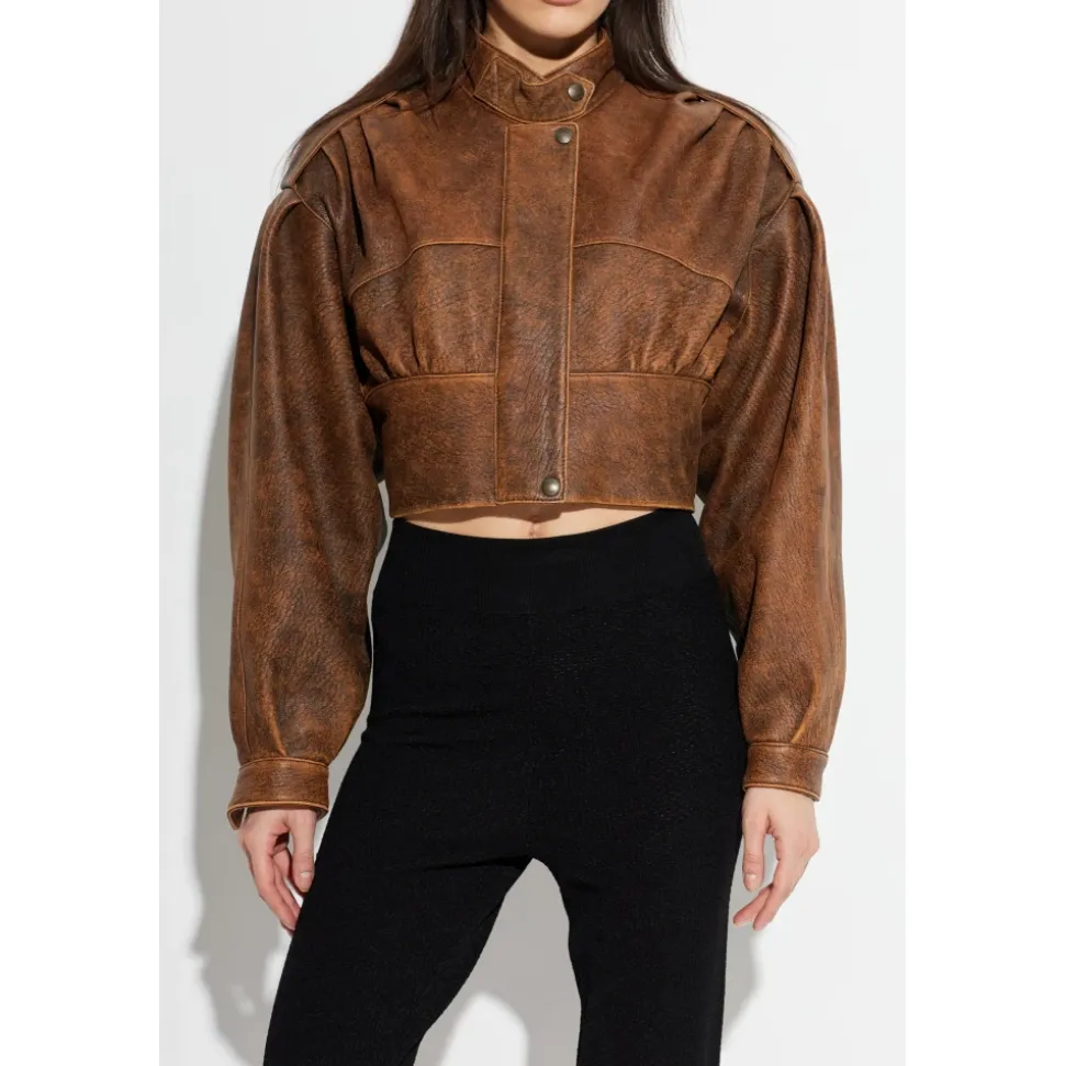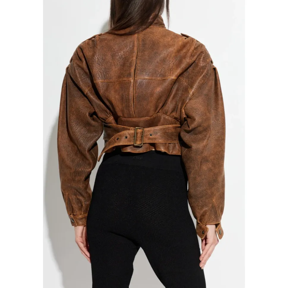 Chloé Læderjakke med stand-up krave kombinerer en kort, boxy silhuet med dramatiske pufærmer og en høj krave med trykknaplukning for et raffineret, moderne look. Det matte, let distressed brune lammeskind og silkeagtige viskoseforing giver komfort og vintage karakter. Vigtige egenskaber: Brun | Lammeskind | Trykknaplukning ved kraven | Silkeagtig viskoseforing for komfort | Stand-up høj krave med trykknaplukning | Pufærmer, der snævrer ind mod håndleddene | Kort, boxy cropped silhuet | Mat finish med let distressing | Dimensioner og pasform: Modelhøjde: 177 cm | Buste: 83 cm | Talje: 61 cm | Hofter: 89 cm | Modellen er iført størrelse: 36 | Kort, boxy snit med en let oversized silhuet, der subtilt fremhæver taljen | Cropped/kort længde, der komplimenterer en dynamisk livsstil | Sammensætning og pleje: Lammeskind | Viskoseforing
