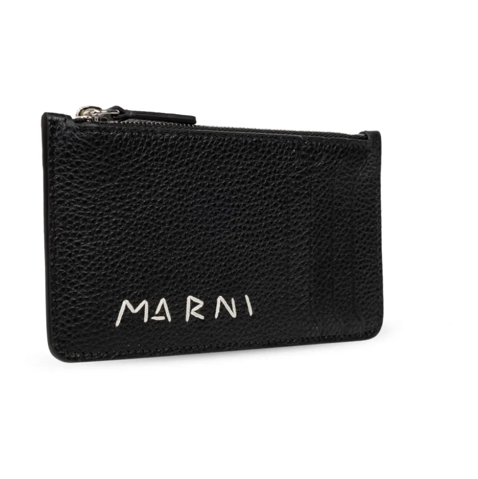 Oplev Marni Læderkortholderen, en blanding af elegance og praktisk anvendelighed. Denne kortholder er fremstillet af førsteklasses kalveskind og har en kornet tekstur og et minimalistisk design, hvilket gør den til et alsidigt tilbehør til enhver lejlighed. Produkt detaljer: Sort | Kalveskind | Fire kortpladser | Ekstra lomme med lynlås | Afrundede hjørner | Sølvfarvet metalfinish | Diskret hvidt designerlogo |