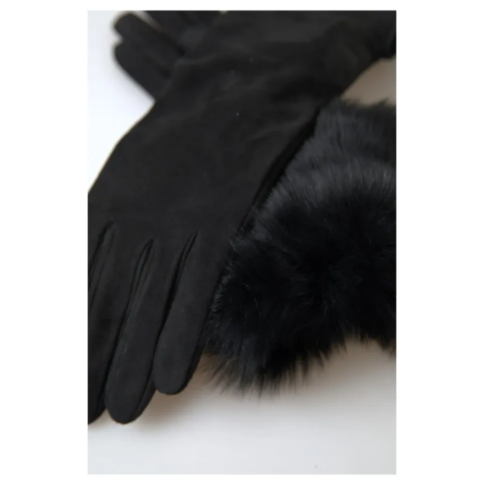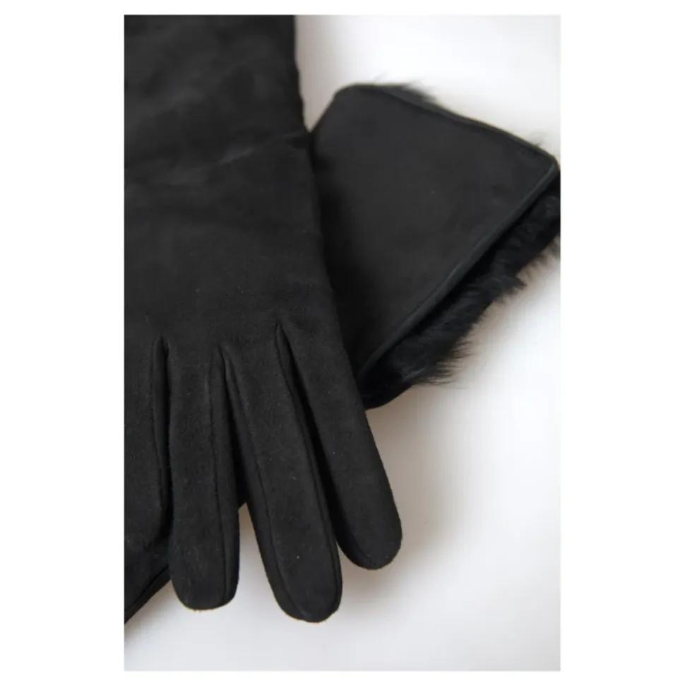 Præsenterer de splinternye Dolce Gabbana albuelange handsker til mænd. Disse handsker er lavet af en luksuriøs kombination af gedeskind (60%) og lammeskind (40%), med en stilfuld pelskant. Den 100% kashmirforing sikrer ultimativ komfort og varme. Håndlavet i Italien, fremviser disse handsker subtile logo detaljer. Opgrader din vintergarderobe med disse eksklusive handsker.