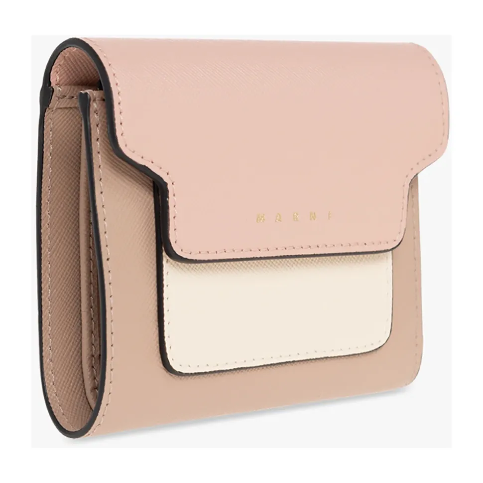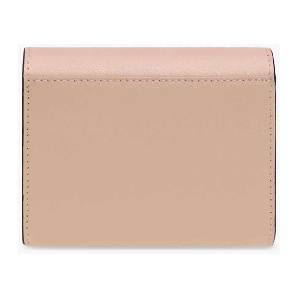 Oplev Marni Læderpung/Kortholder, et stilfuldt tilbehør fremstillet af førsteklasses kalveskind. Med en trykknaplukning og et logo print er den designet til både elegance og funktionalitet. Produkt detaljer: Pink | Beige | Creme | Kalveskind | Trykknaplukning | Fire stiklommer | Et seddelrum | En lynlåsmøntlomme | Fire kortlommer | Logo print på forsiden | Sammensætning og pleje: 100% Kalveskind