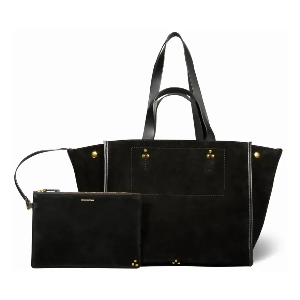 Løft din stil med denne Jérôme Dreyfuss lædertote, designet til alsidighed og elegance. Med en læderlukning med trykknapper og fire læderhanke i forskellige længder er denne tote perfekt til det moderne individ på farten. Produkt detaljer: Sort | Kalveskind | Læderlukning med trykknapper | Fire læderhanke | Rummeligt interiør | Fastgjort læderpung | Dimensioner og pasform: 31 x 27 x 20 cm | Sammensætning og pleje: 90% kalveskind | 10% okselæder | 100% okselæderforing