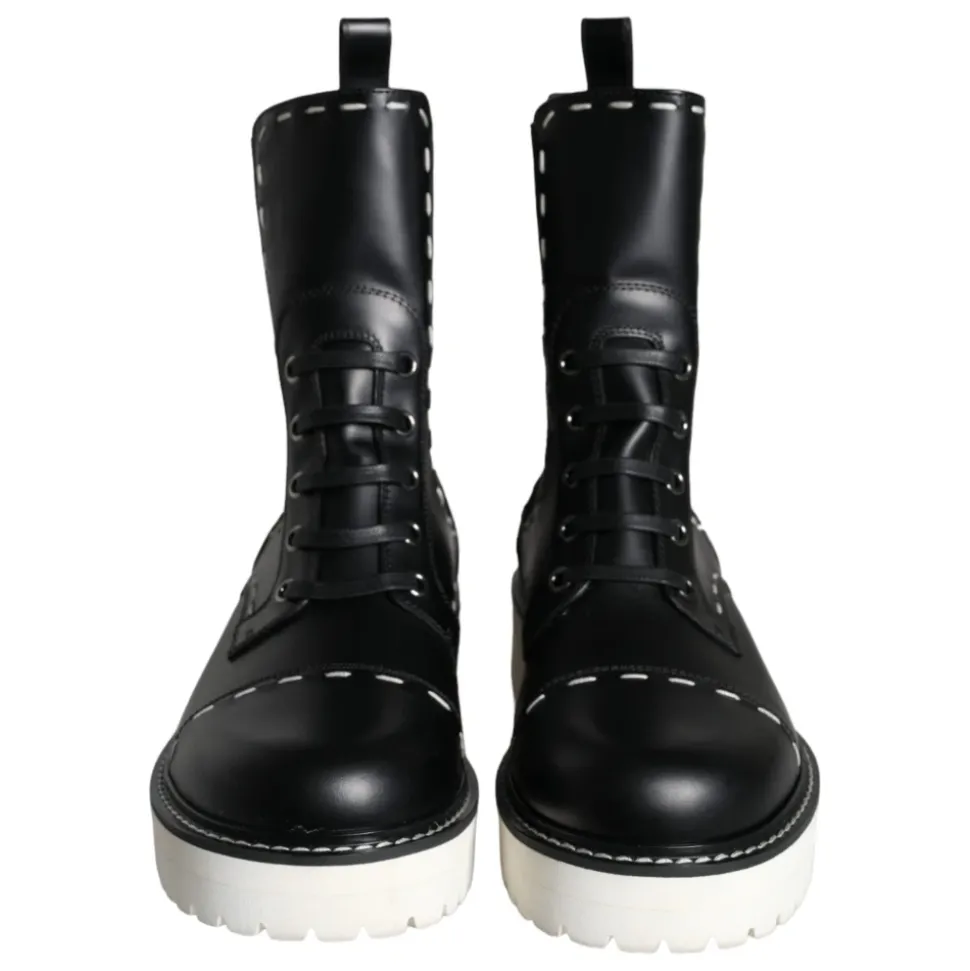 Dolce & Gabbana Lækre Støvler med Midterskaft kombinerer italiensk håndværk med en silhuet med snørebånd og elastiske sidepaneler for nem på- og aftagning. Designet balancerer struktur og komfort til hverdagsstyling. Nøgleattributter: Sort | Hvid | Læder | Holdbar gummisål | Elastiske sidepaneler for nem på/af | Snørelukning | Midterskaft silhuet | Logo detaljering | Fremstillet i Italien | Sammensætning & pleje: 100% Læder