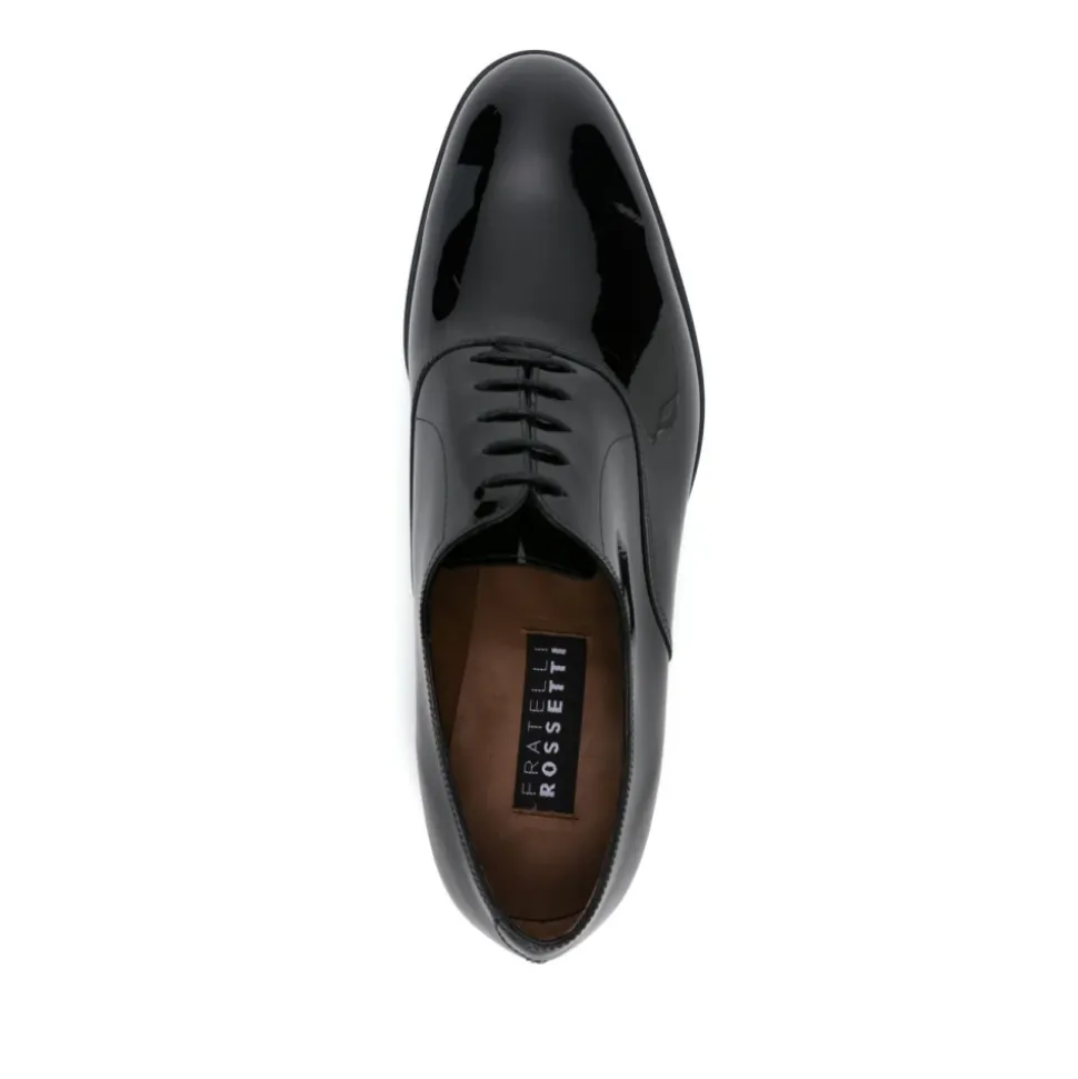 Fratelli Rossetti Laksnøresko kombinerer højglanspoleret laklæder med en lædersål for et elegant business- og formelt look. Snørelukningen og den afrundede tå giver en klassisk struktur og alsidighed fra dag til aften. Vigtige egenskaber: Sort | Laklæder | Snørelukning | Afrundet tå | Højglanspoleret finish | Lædersål | Sammensætning og pleje: Foring: 100% kalvelæder | Ydre: 100% laklæder | Sål: 100% kalvelæder