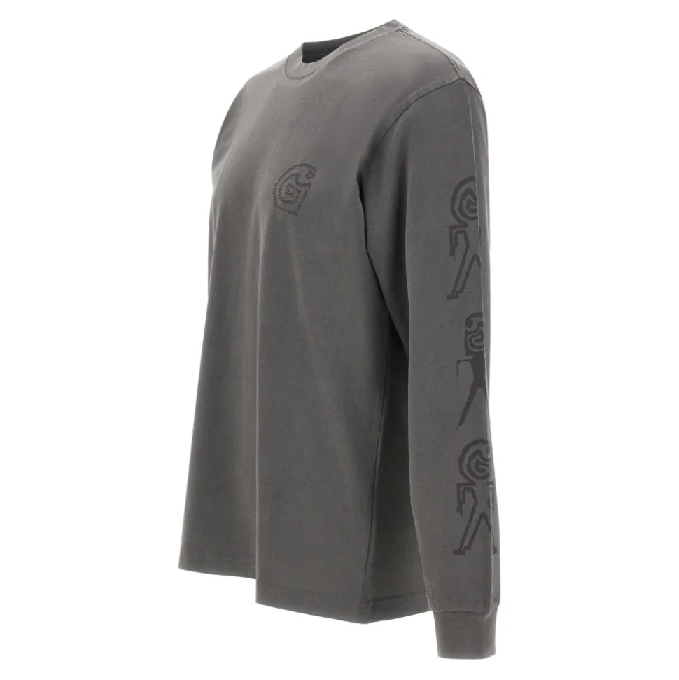 Carhartt WIP langærmet Terrestrial T-shirt kombinerer markante grafiske tryk med klassiske ribkanter til hverdagsbrug. Designet til afslappet brug med fokus på trykte detaljer hen over brystet, ryggen og ærmerne. Vigtige egenskaber: Antracit | Bomuld | Letvægtsstof | Rund hals | Lange ærmer | Ribstrikkede manchetter og kant forneden | Grafiske tryk på bryst, ryg og ærmer | Kontrastfarvet logo grafik | Dimensioner og pasform: Almindelig pasform | Materialesammensætning og pleje: 100% bomuld | Maskinvask kold
