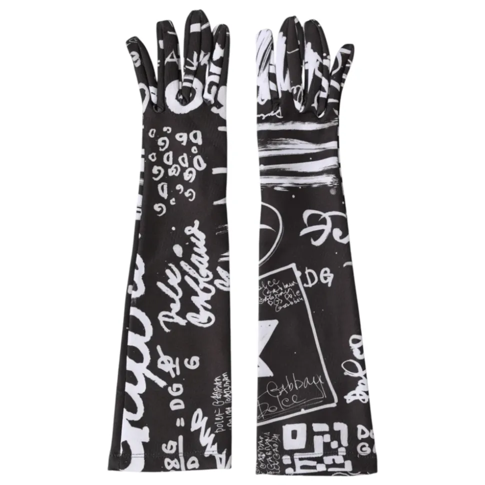 Dolce & Gabbana Lange Handsker – albuelange luffer med det ikoniske DG-logo i et sort og hvidt tofarvet design, der giver udvidet armdækning med et raffineret look. Vigtigste egenskaber: Sort | Hvid | Polyester | Albuelang dækning | Luffekonstruktion | DG-logo detalje | Tofarvet farveblokering | Albuelang silhuet | Sammensætning og pleje: 90% Polyester, 10% Elastan