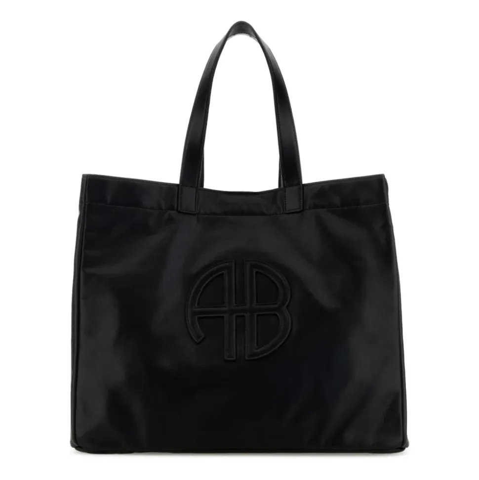 Anine Bing Large Rio Tote i læder – en rummelig, struktureret shopping tote designet til hverdagsbrug og rejser. Den kombinerer en ren, rektangulær silhuet med et tonalt logo for nem og alsidig brug. Nøgleattributter: Sort | Læder | Rummeligt indre | Struktureret silhuet | Holdbar læderkonstruktion | Magnetisk trykknaplukning | To tophanke | Aftagelig indvendig base | Fuldt foret indre | Logo-monogram foran | Rektangulær form | Glat læderfinish | Dimensioner og pasform: Bredde: 42 cm | Højde: 34 cm | Dybde: 22 cm | Hankhøjde: 20 cm | Sammensætning og pleje: 48% læder | 25% polyester | 27% polyurethan | Pletrensning kun.