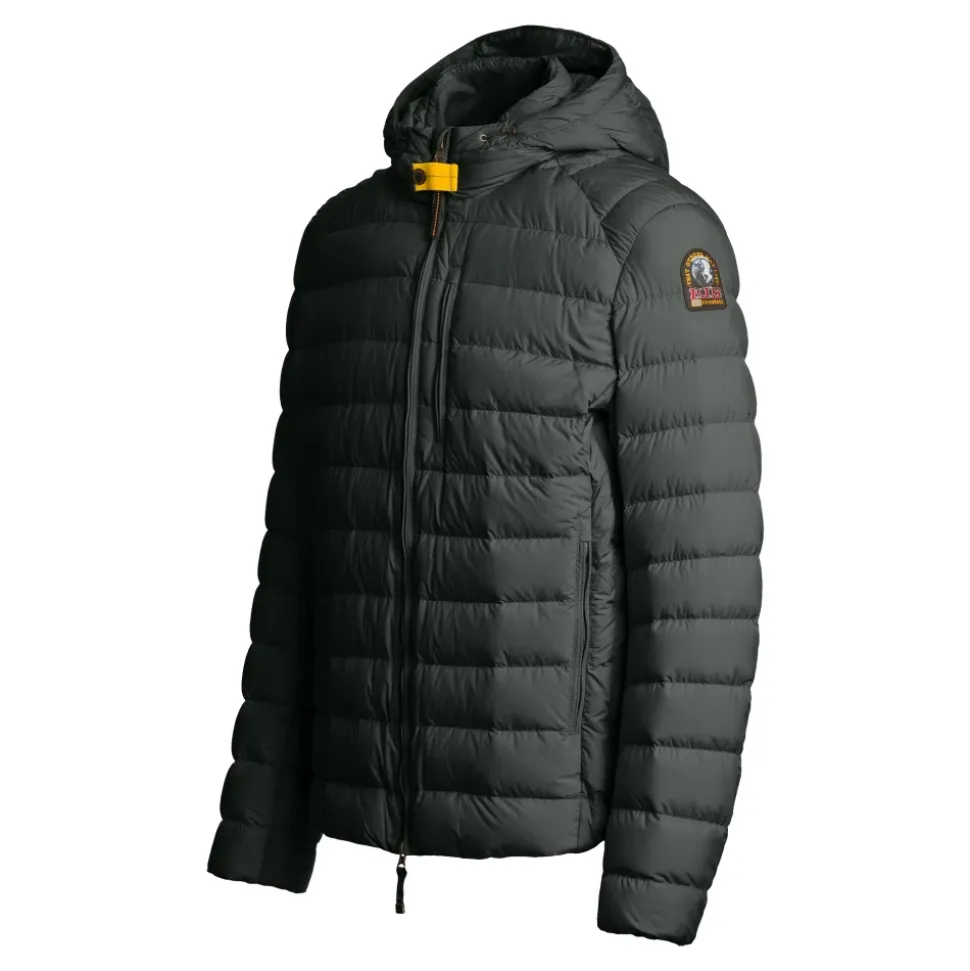 Last Minute er en kort quiltet jakke med hætte og dunfyld fra Super Lightweight-serien, lavet af mat finish polyester taffeta. Perfekt til daglig brug, den fås i et udvalg af klassiske farver. Yderstof: mat polyester taffeta med hydrofob behandling og dun-sikker foring: 20 den nylon taffeta med halvblank finish og dun-sikker behandling Fyld: 90% andedun, 10% andefjer Hætte med justerbar snor Lynlås foran med tovejs lynlås Tre lynlåslommer og en indvendig lomme med velcro Ventilation under armene Elastisk kant og manchetter Ribbet krave indvendigt Parajumpers mærke på ærmet og ikonisk gul stropelukning ved halsen.