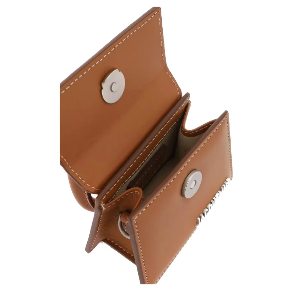 Jacquemus Le Chiquito tasken er en kompakt mini-lædertaske designet til håndfri brug og et løftet hverdagslook. Dens strukturerede silhuet og aftagelige skulderrem gør den ideel til at bære de vigtigste ting på farten. Nøgleattributter: Brun | Læder | Magnetisk flaplukning | Aftagelig, justerbar skulderrem | Top håndtag | Flap top | Struktureret silhuet | Sølvfarvet logo detalje | Farvede kanter | Forstærket håndtag | Dimensioner og pasform: 12 x 6 cm | Sammensætning og pleje: 100% Læder