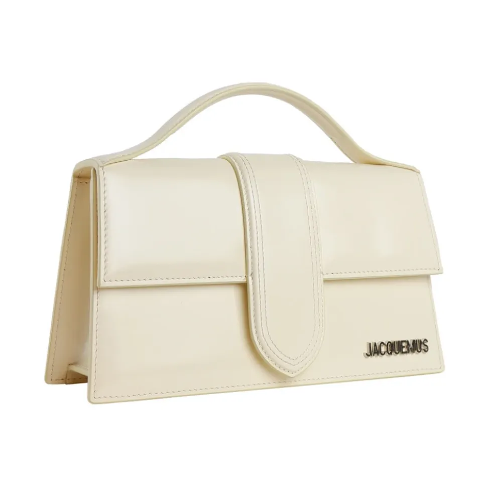 Jacquemus Le Grand Bambino Structured Bag er en kompakt, blank kalveskindslædertaske designet til alsidig brug både til hverdag og aften. Dens strukturerede silhuet og dobbelte bæremuligheder kombinerer raffineret stil med praktisk funktionalitet. Vigtigste egenskaber: Beige | Kalveskindslæder | Justerbar og aftagelig skulderrem | Fast top håndtag | Dobbelt bæring: crossbody/skulder og top-håndtag | Magnetisk frontklaplukning | Flad indvendig lomme | Åben udvendig baglomme | Støvpose medfølger | Blank finish | Struktureret silhuet | Synlige syninger | Farvede kanter | Frontklap | Mål & pasform: 23.5 cm x 13 cm | Sammensætning & pleje: Kalveskindslæder | Bomuldsfor | Sølvfarvet metal hardware