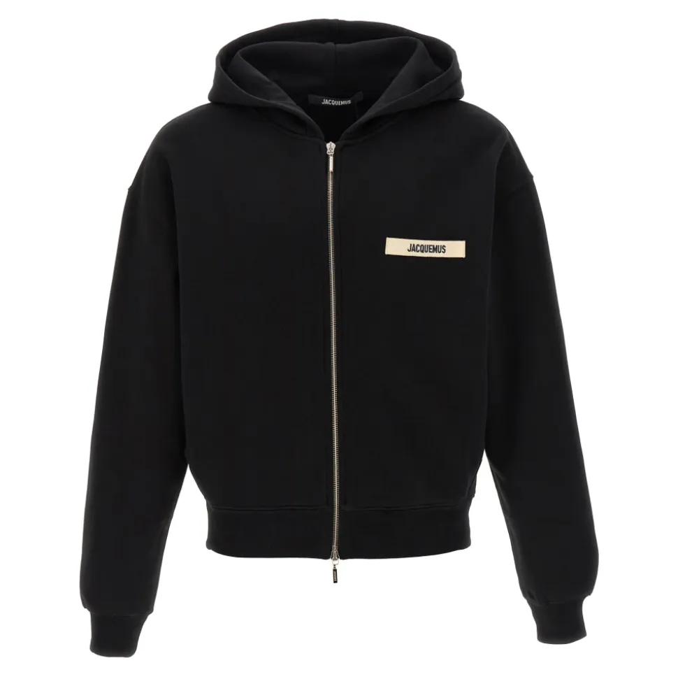 Jacquemus Le Hoodie Grip Gros Grain Hættetrøje er en bomuldshættetrøje med lynlås foran, grosgrain-detaljer og et diskret logo, designet til et løftet hverdagslook. Vigtige egenskaber: Sort | Bomuld | Lynlåslukning foran | Hætte | Grosgrain-kant | Logoapplikation foran | Lange manchetærmer | Dimensioner og pasform: Normal pasform | Sammensætning og pleje: 100% bomuld